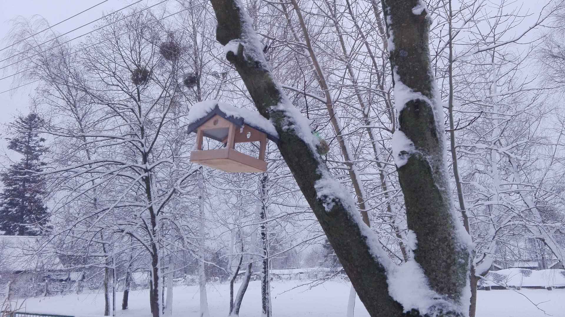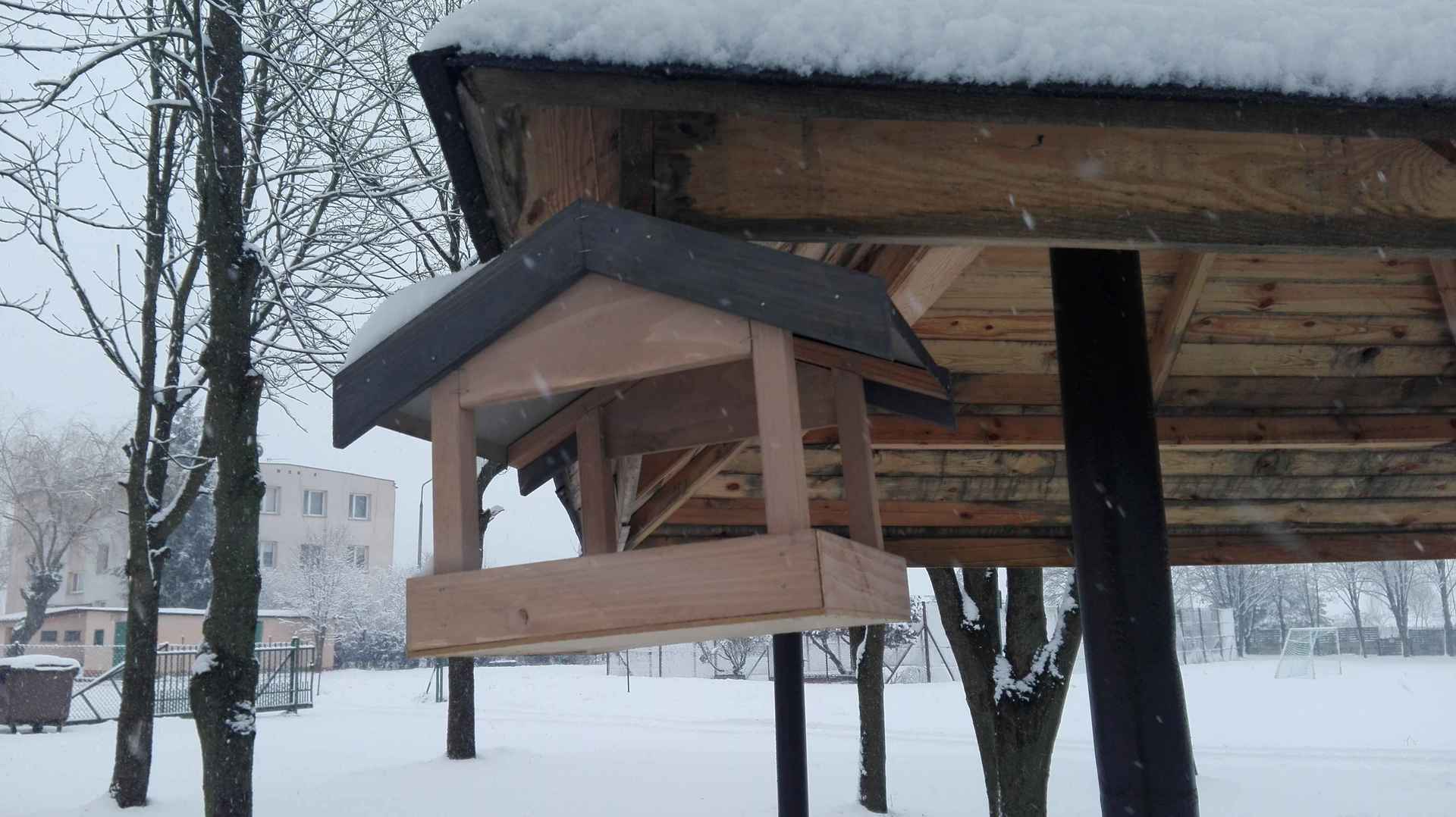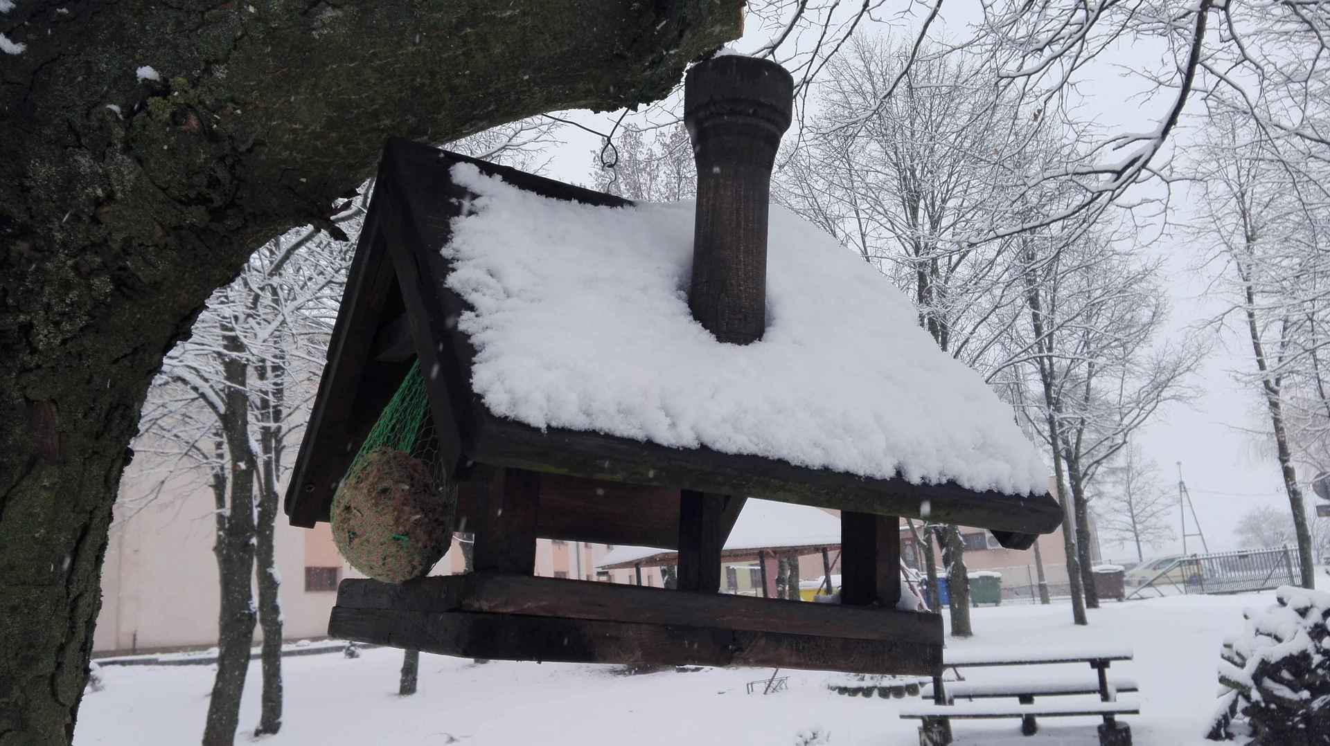 Zima jest dla ptaków ciężkim okresem, ze względu na niskie temperatury i trudne warunki pogodowe. W związku z tym, na drzewach znajdujących się przy naszej szkole oraz przy internacie zostały rozwieszone drewniane karmniki. Przylatujące ptaki mogą skorzystać z odżywczego i pełnego energii pokarmu.