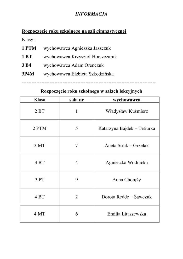 odbędzie się 1 września na sali gimnastycznej o godz. 9.00.