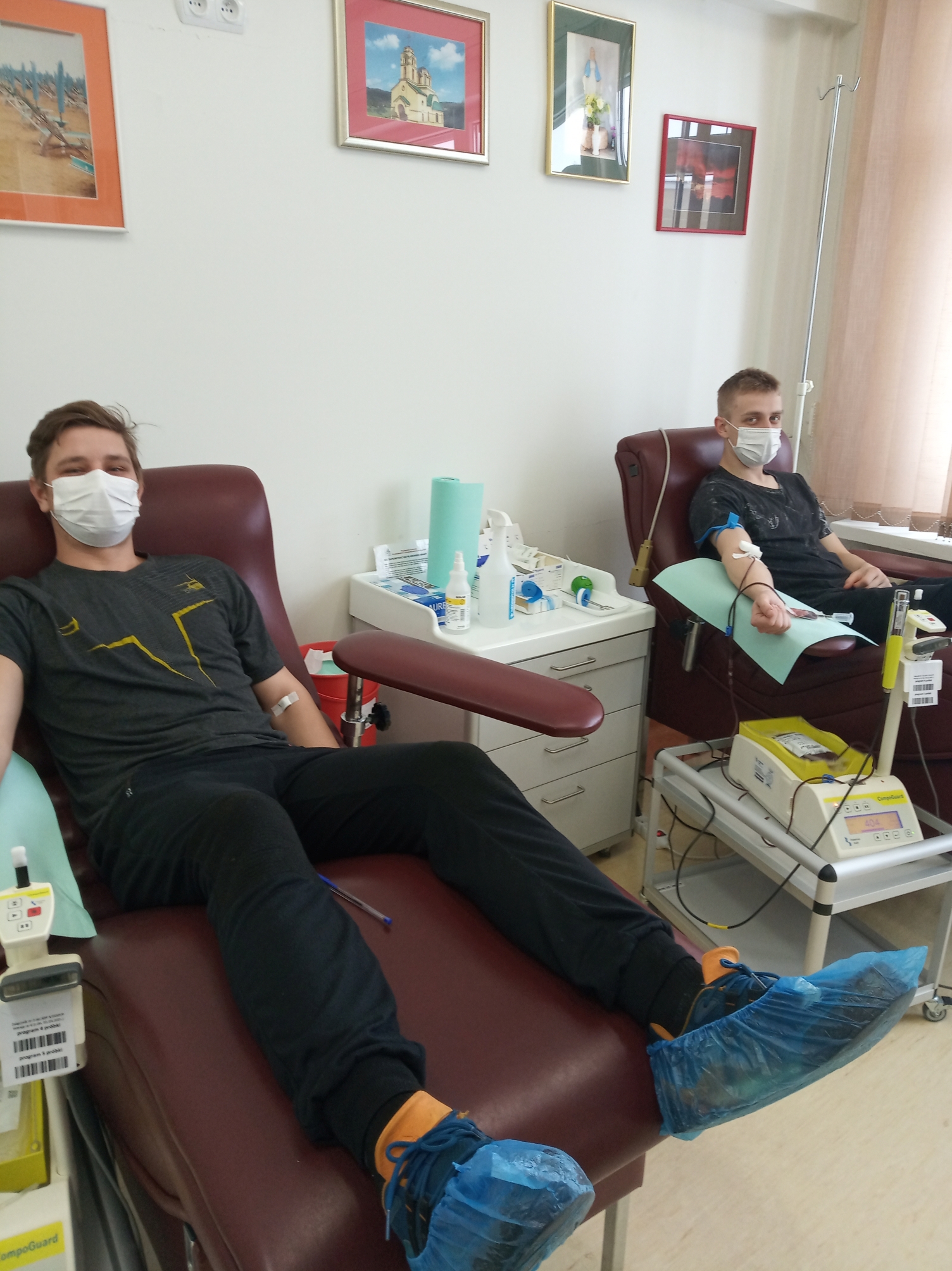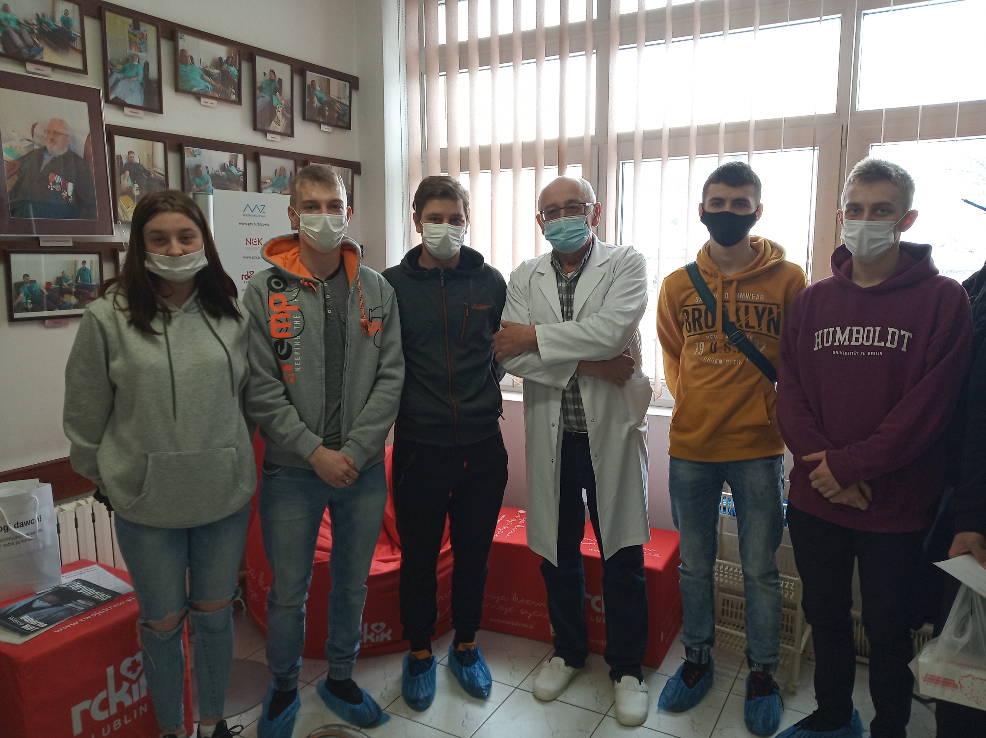 Jakub i Karol z klasy 4MT, Łukasz i Radosław z klasy 4BT oraz Sylwia i Dominik z klasy 3PT postanowili oddać krew.