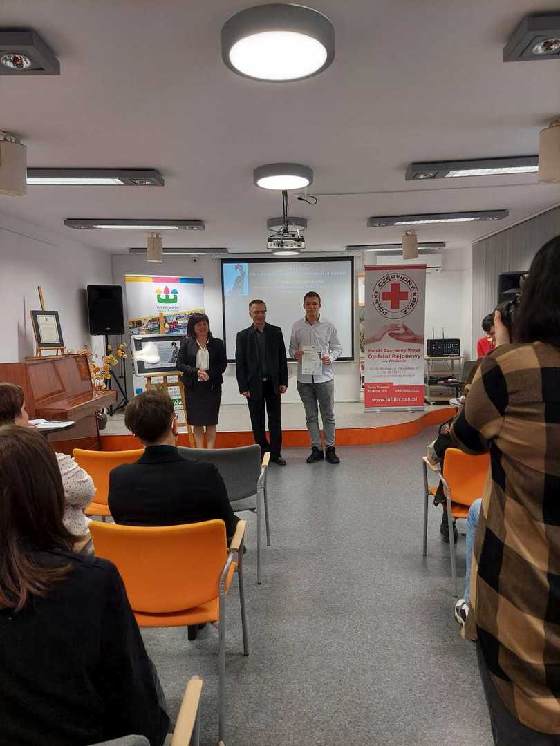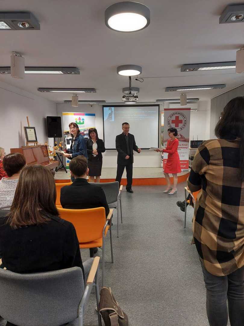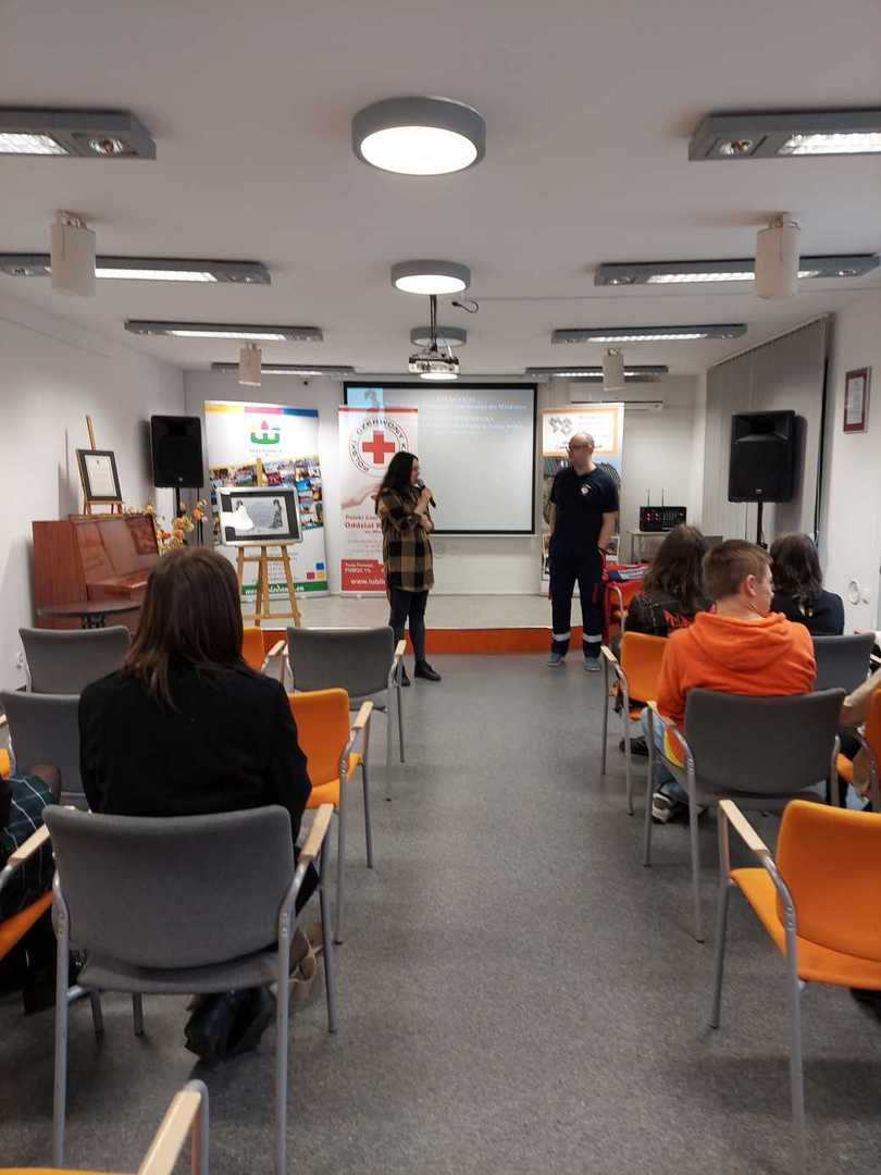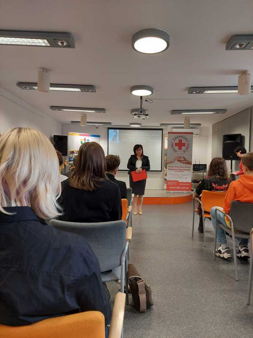 który opowiadał o pomocy humanitarnej udzielanej w ramach Polskiego Czerwonego Krzyża.