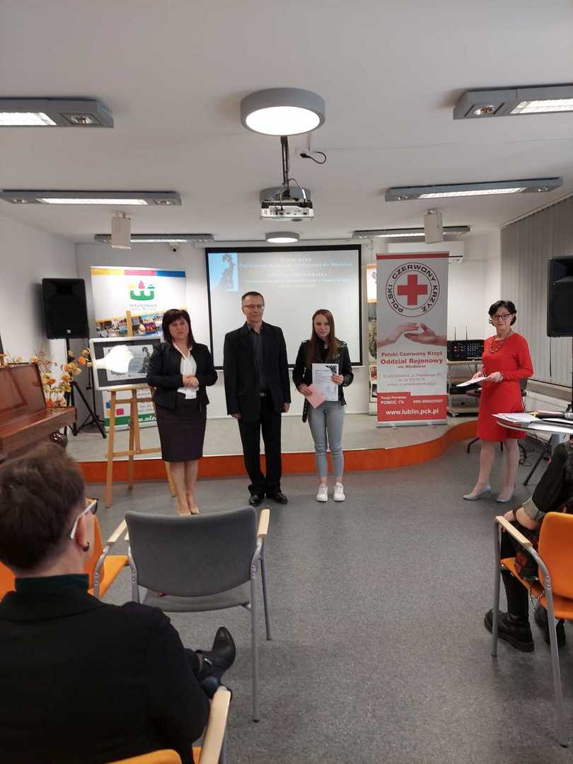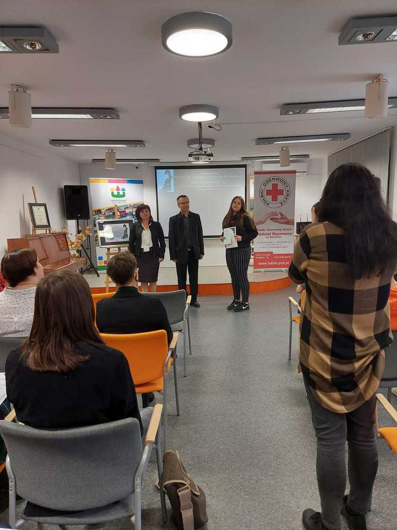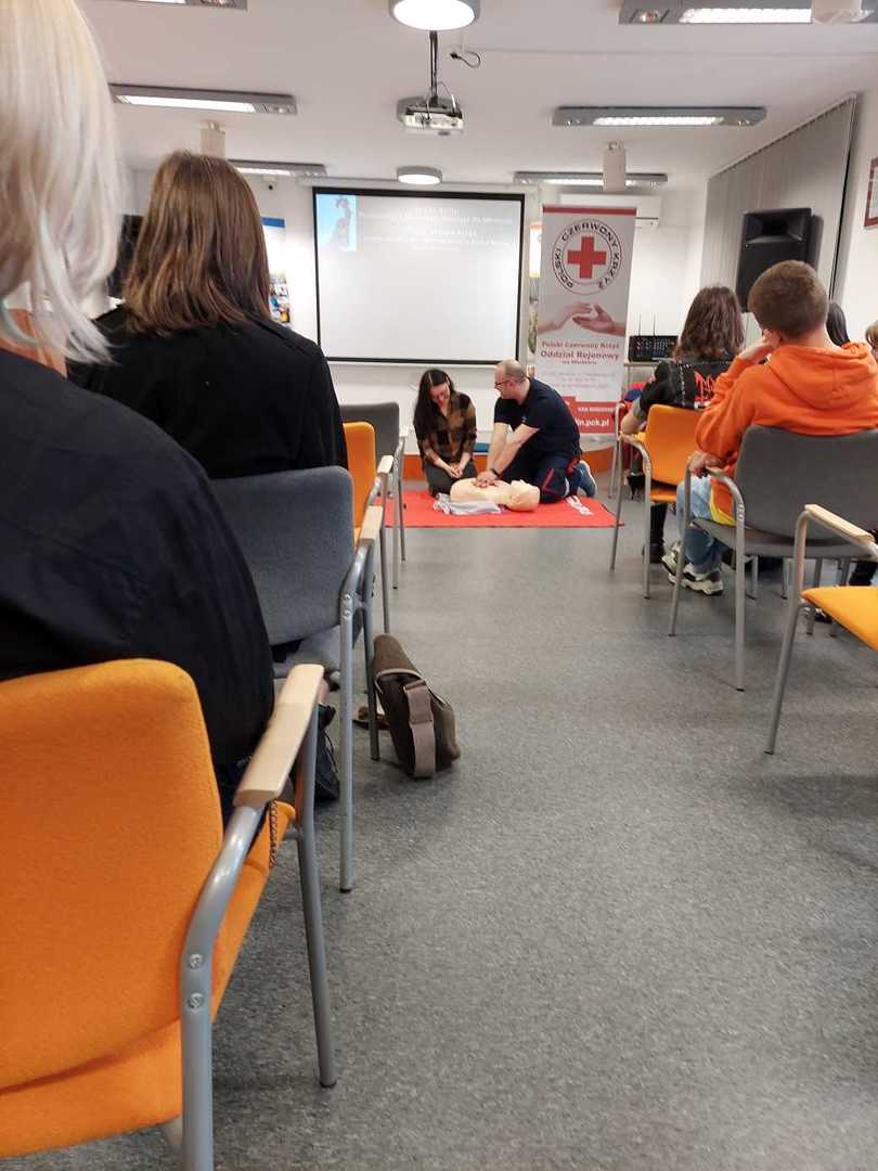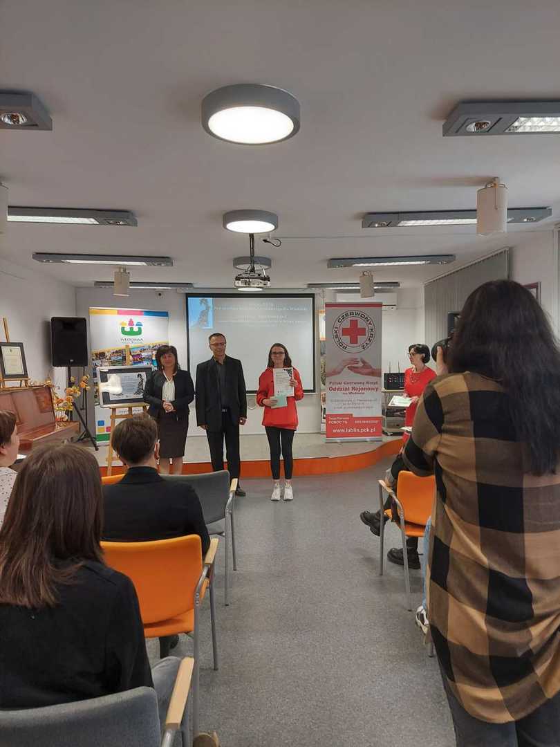 który opowiadał o pomocy humanitarnej udzielanej w ramach Polskiego Czerwonego Krzyża.