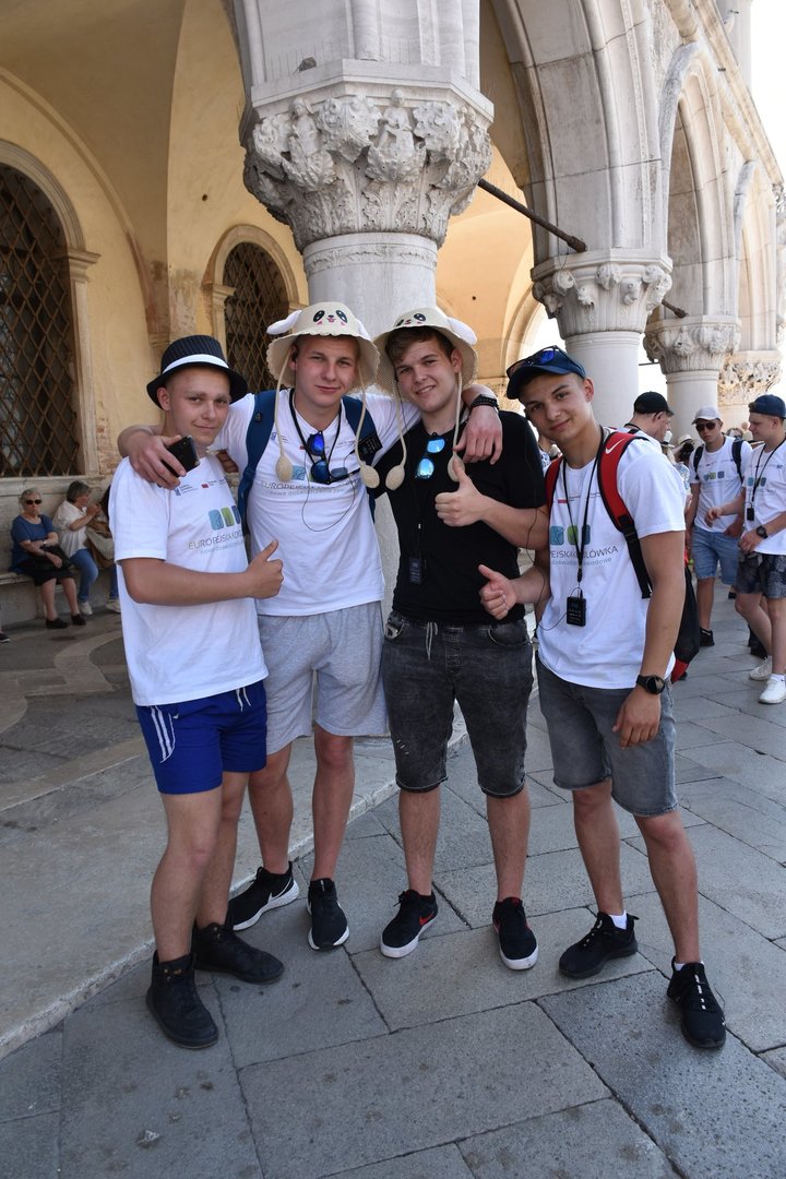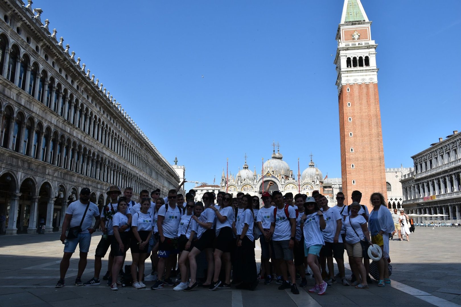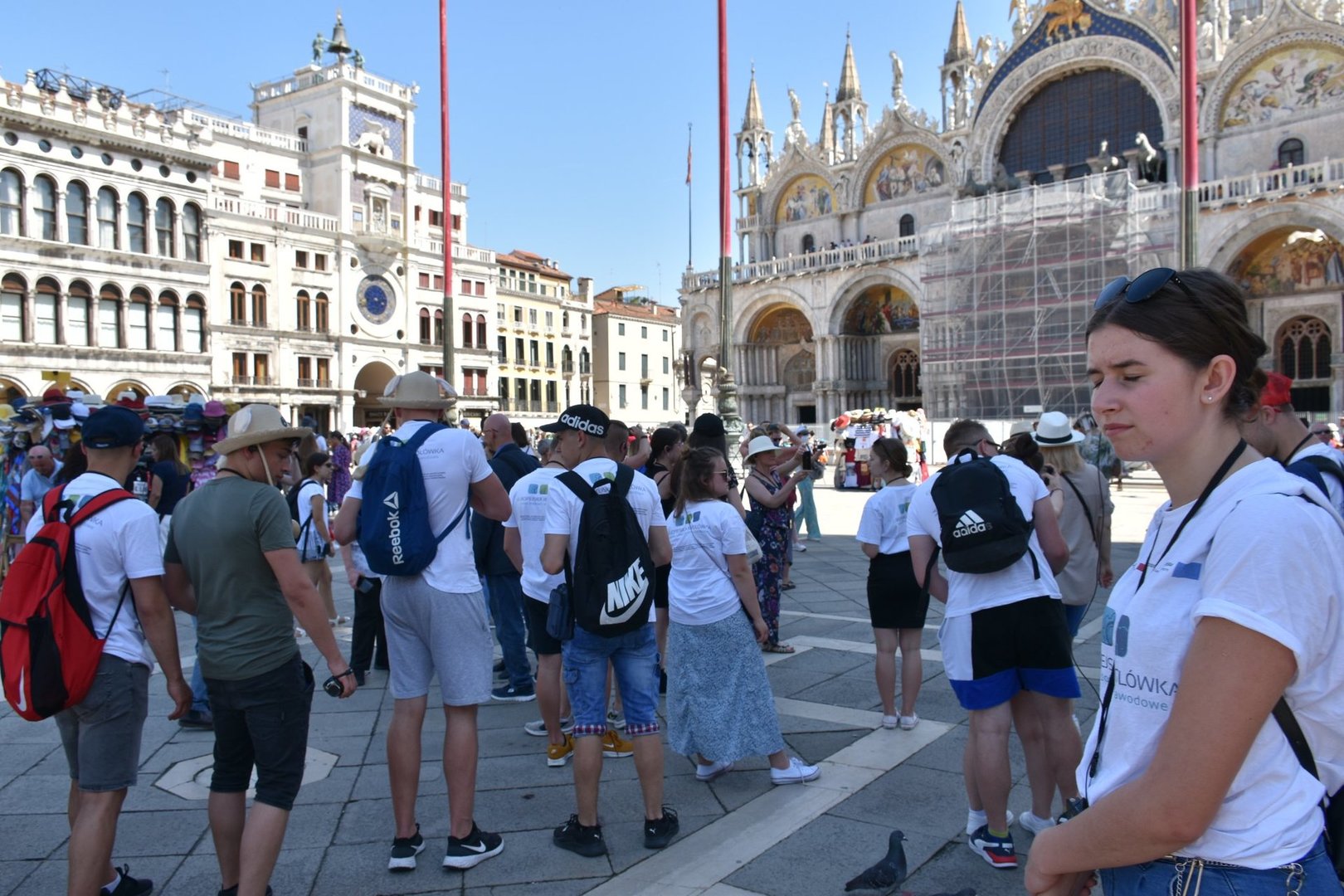 W niedzielę nastąpił długo wyczekiwany przez nas punkt programu kulturowego – wycieczka do stolicy regionu, czyli Wenecji zbudowanej na 118 wyspach połączonych mostami. Barką płynącą z Tronchetto przez Canalle della Giudecca dotarliśmy do Placu Św. Marka, skąd zaczęliśmy zwiedzanie miasta - miejsca urodzin najbardziej znanego uwodziciela, Giacomo Casanovy. Tu każdy zakątek jest unikatowy, stąd nie dziwi fakt, że to bajkowe miejsce figuruje na Liście Światowego Dziedzictwa UNESCO. Nas urzekły Bazylika Św. Marka, Pałac Dożów, wieża zegarowa, kolumny z XII wieku z posągiem Św. Teodora i lwem Św. Marka i dzwonnica, z której rozpościera się widok na miasto i lagunę. Z niesłabnącym zaciekawieniem spacerowaliśmy obok najbardziej znanej weneckiej kawiarni Cafe Florian łączącej historię, sztukę i elegancję, a pokonując kolejne mosty podziwialiśmy liczne wystawy sklepowe prezentujące lokalne wyroby ze szkła Murano cenione na całym świecie za jakość oraz walory historyczne i tradycyjne. Do hotelu wróciliśmy szczęśliwi, choć zmęczeni słońcem i wielogodzinnym marszem po wąskich uliczkach pełnego uroku miasta, do którego obiecaliśmy sobie kiedyś jeszcze przyjechać.