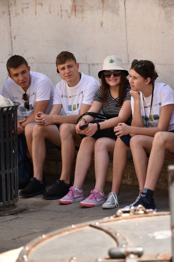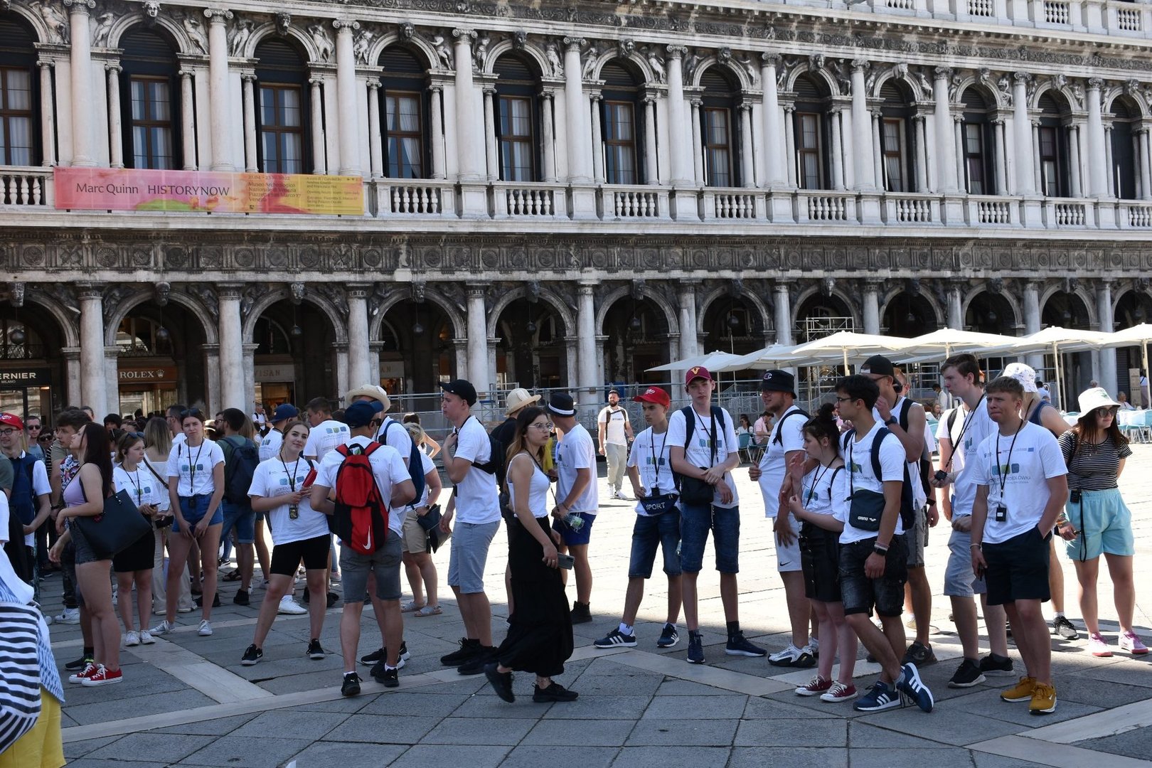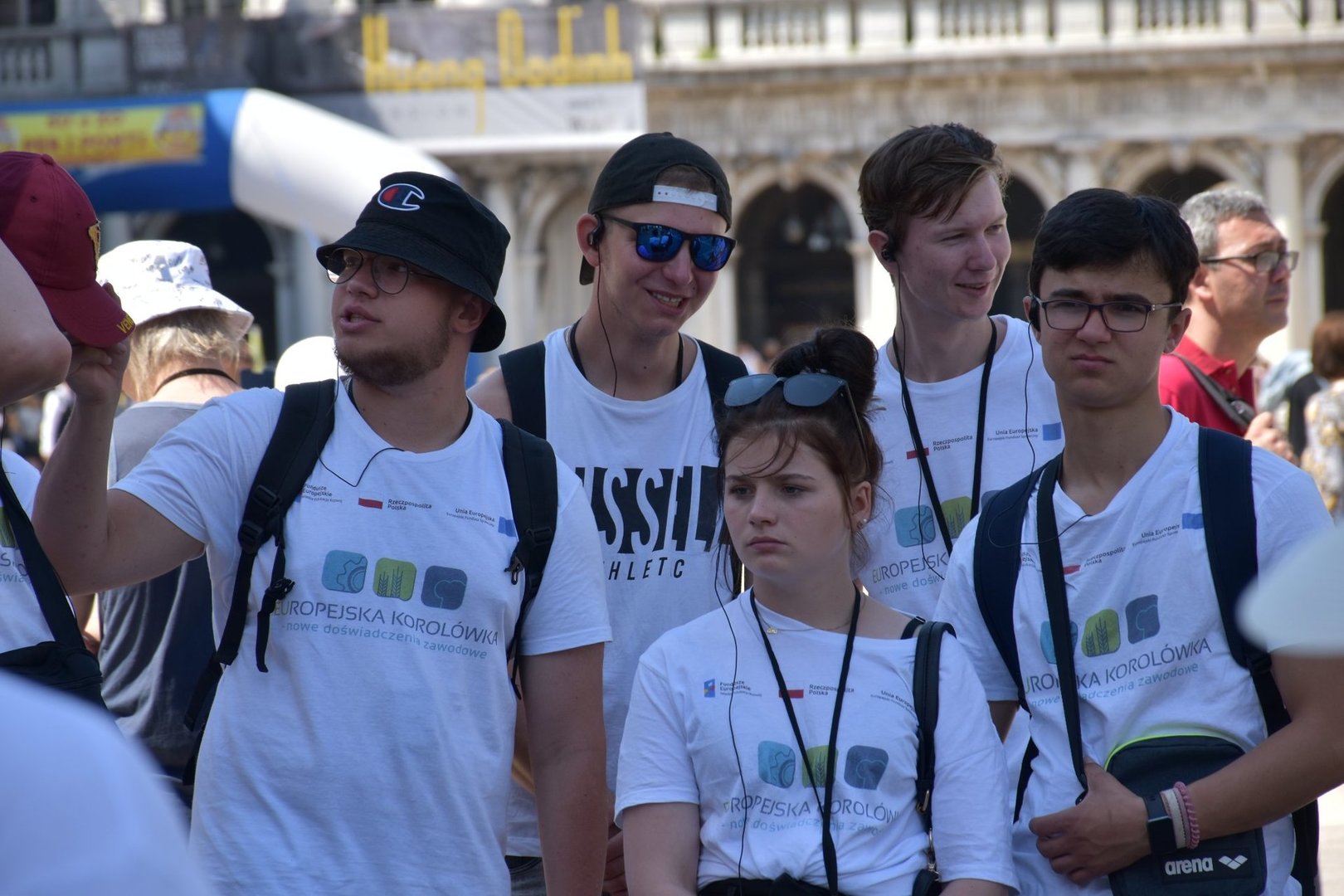 W niedzielę nastąpił długo wyczekiwany przez nas punkt programu kulturowego – wycieczka do stolicy regionu, czyli Wenecji zbudowanej na 118 wyspach połączonych mostami. Barką płynącą z Tronchetto przez Canalle della Giudecca dotarliśmy do Placu Św. Marka, skąd zaczęliśmy zwiedzanie miasta - miejsca urodzin najbardziej znanego uwodziciela, Giacomo Casanovy. Tu każdy zakątek jest unikatowy, stąd nie dziwi fakt, że to bajkowe miejsce figuruje na Liście Światowego Dziedzictwa UNESCO. Nas urzekły Bazylika Św. Marka, Pałac Dożów, wieża zegarowa, kolumny z XII wieku z posągiem Św. Teodora i lwem Św. Marka i dzwonnica, z której rozpościera się widok na miasto i lagunę. Z niesłabnącym zaciekawieniem spacerowaliśmy obok najbardziej znanej weneckiej kawiarni Cafe Florian łączącej historię, sztukę i elegancję, a pokonując kolejne mosty podziwialiśmy liczne wystawy sklepowe prezentujące lokalne wyroby ze szkła Murano cenione na całym świecie za jakość oraz walory historyczne i tradycyjne. Do hotelu wróciliśmy szczęśliwi, choć zmęczeni słońcem i wielogodzinnym marszem po wąskich uliczkach pełnego uroku miasta, do którego obiecaliśmy sobie kiedyś jeszcze przyjechać.
