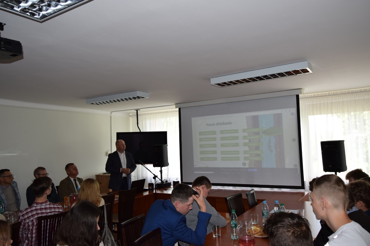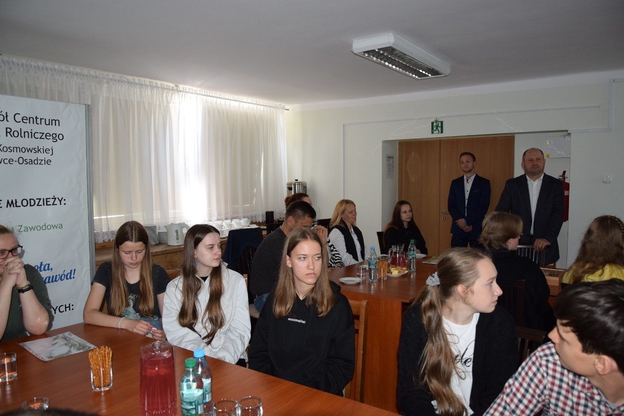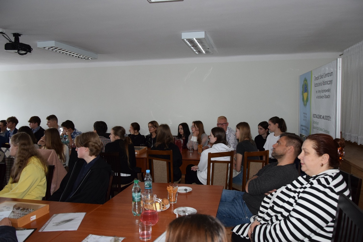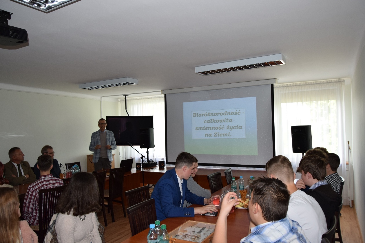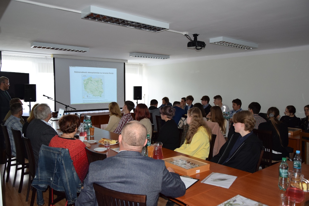 Pan Krzysztof Horszczaruk – nauczyciel ZSCKR w Korolówce-Osadzie przedstawił zebranym efekty pracy grupy projektowej z naszej szkoły, która za swoje działania z zakresu bioróżnorodności zajęła w minionym roku drugie miejsce w ogólnopolskim konkursie „Zrównoważone rolnictwo w służbie bioróżnorodności”