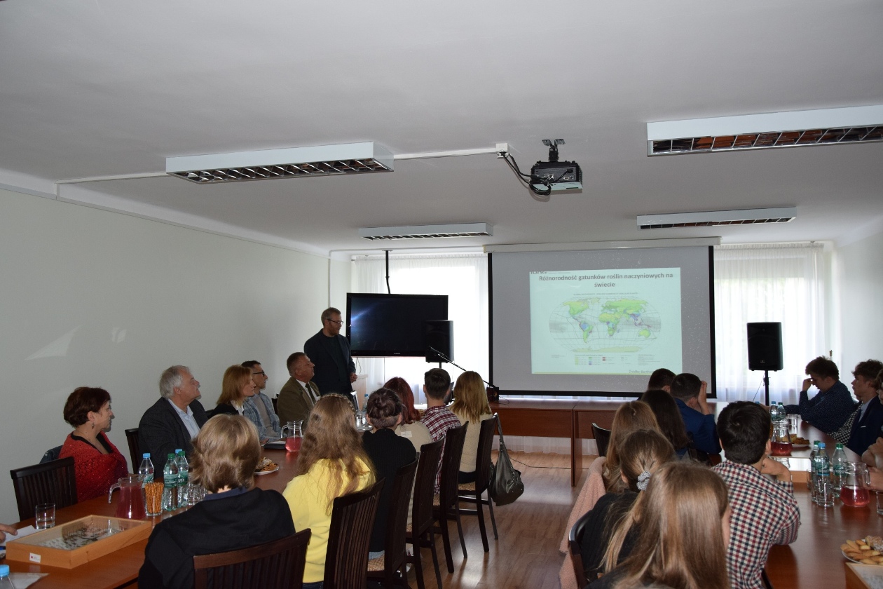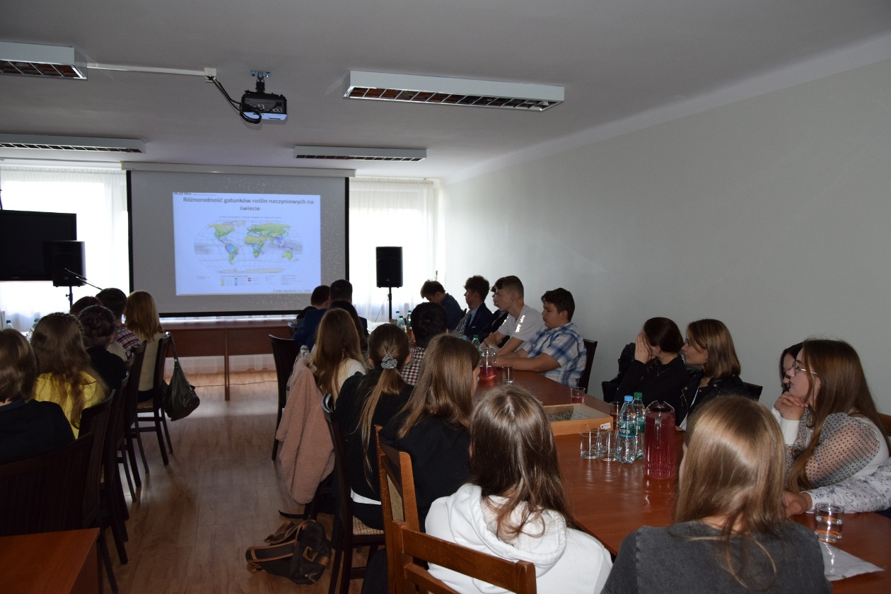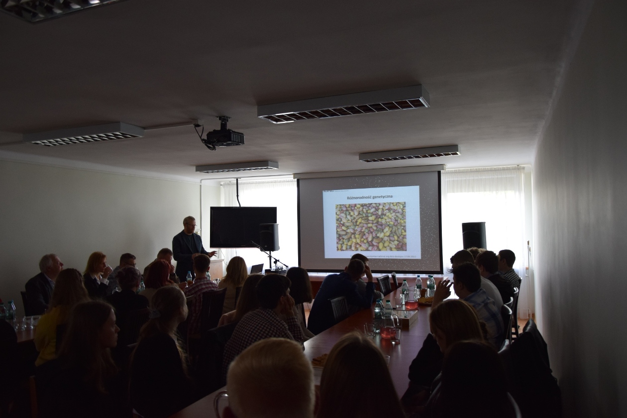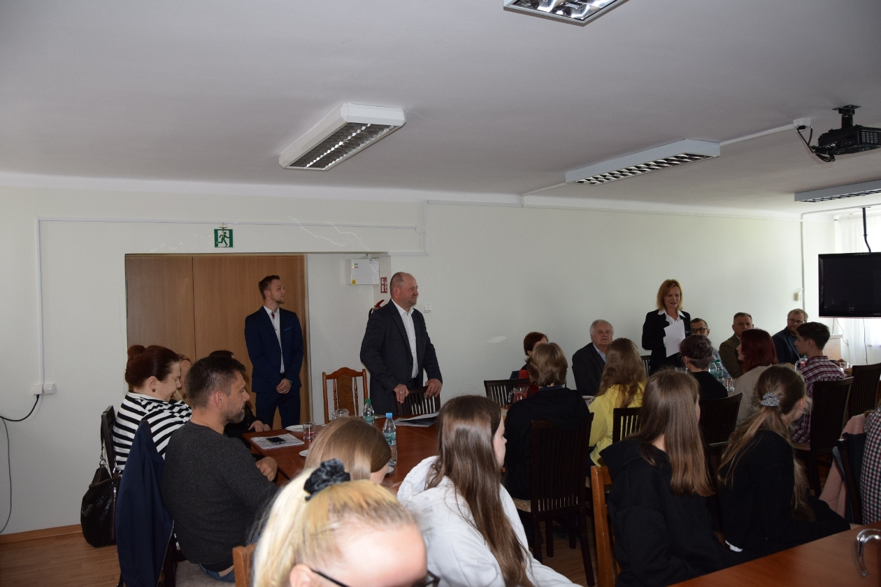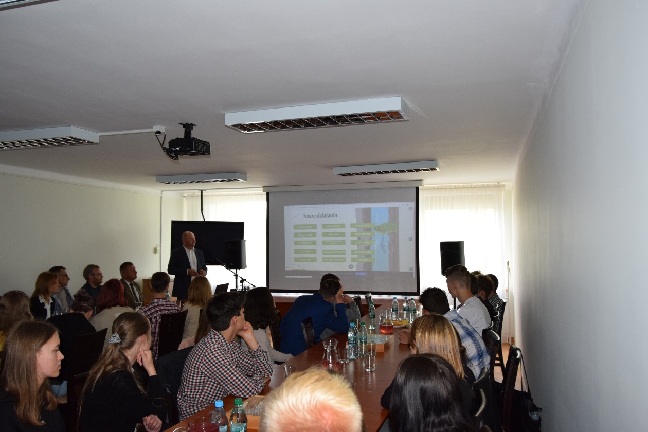 Pan Krzysztof Horszczaruk – nauczyciel ZSCKR w Korolówce-Osadzie przedstawił zebranym efekty pracy grupy projektowej z naszej szkoły, która za swoje działania z zakresu bioróżnorodności zajęła w minionym roku drugie miejsce w ogólnopolskim konkursie „Zrównoważone rolnictwo w służbie bioróżnorodności”