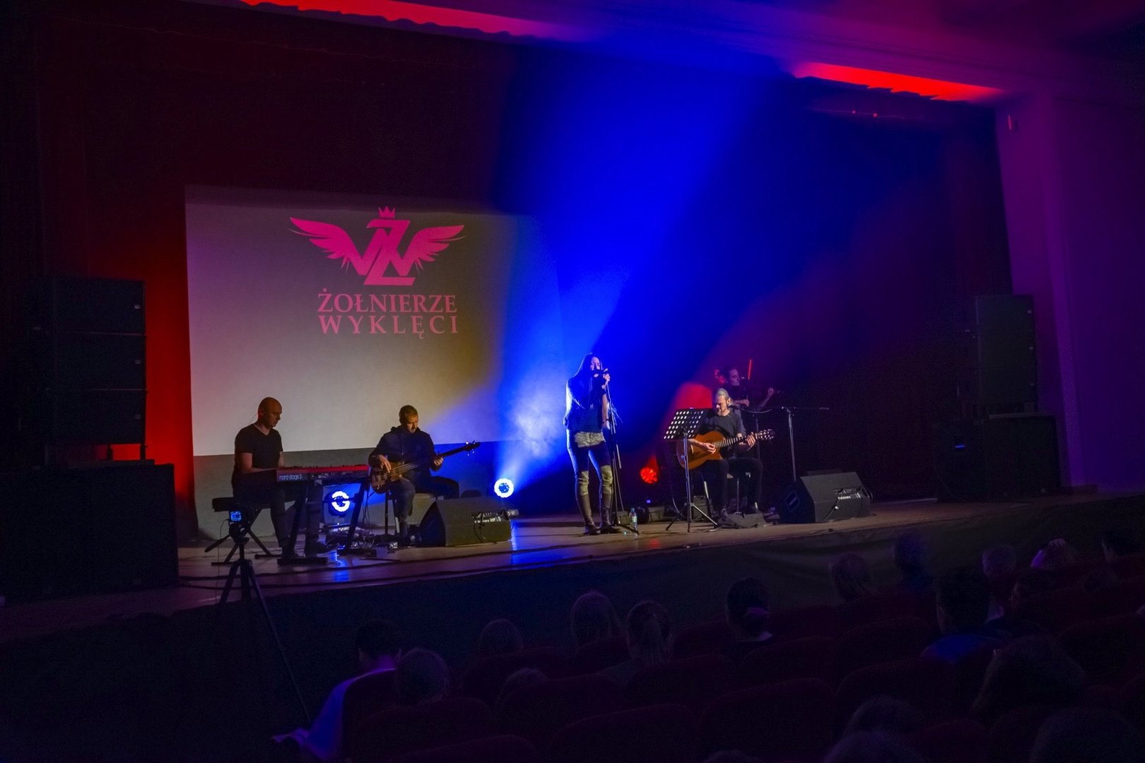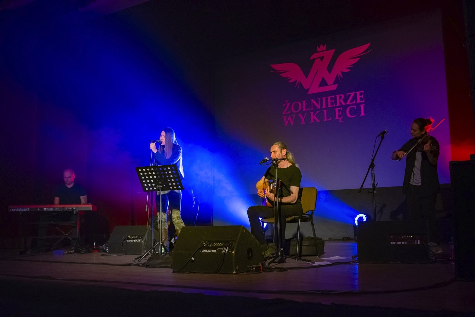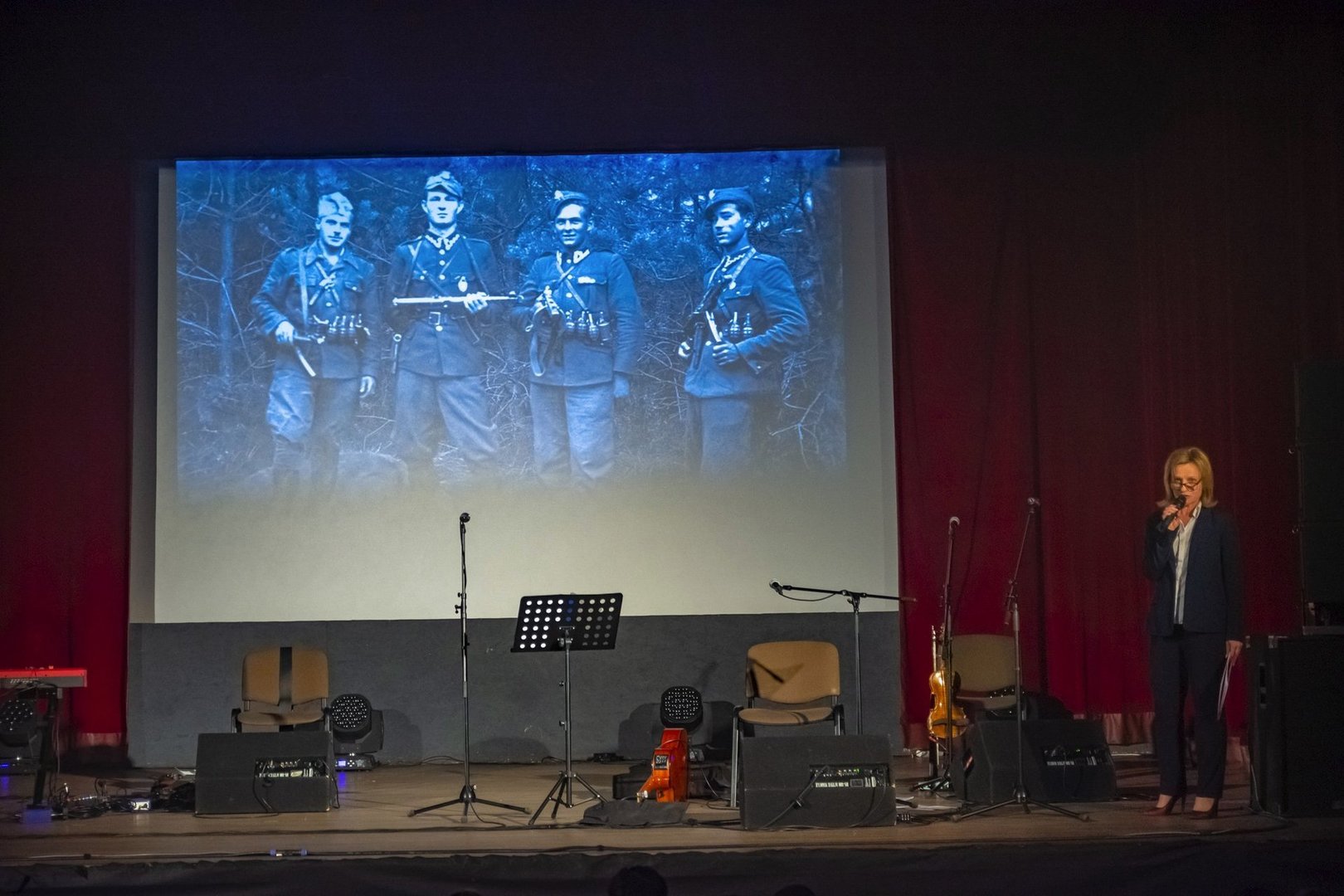 Wprowadzeniem do występu zespołu była krótka przemowa przypominająca historię bohaterów umieszczonych na zdjęciu – Żelaznego i Żołnierzy Wyklętych, którą wygłosiła pani Renata Holaczuk.