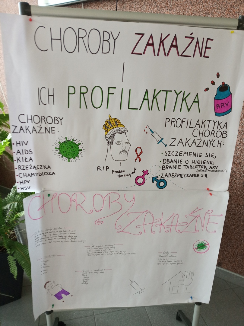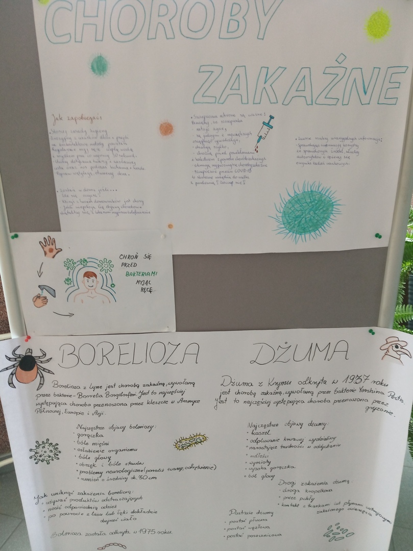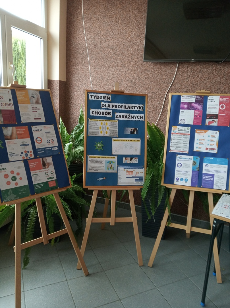 Nauczyciele i uczniowie mogli obejrzeć wystawę na temat chorób zakaźnych, a także zapoznać się z ulotkami dotyczącymi profilaktyki i szczepień.