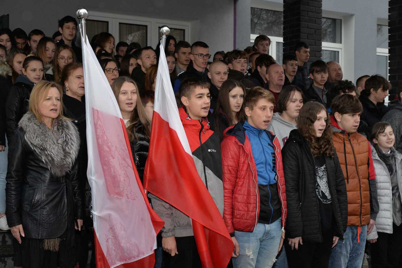 niepodległości i bohaterach narodowych. Uroczyste śpiewanie hymnu