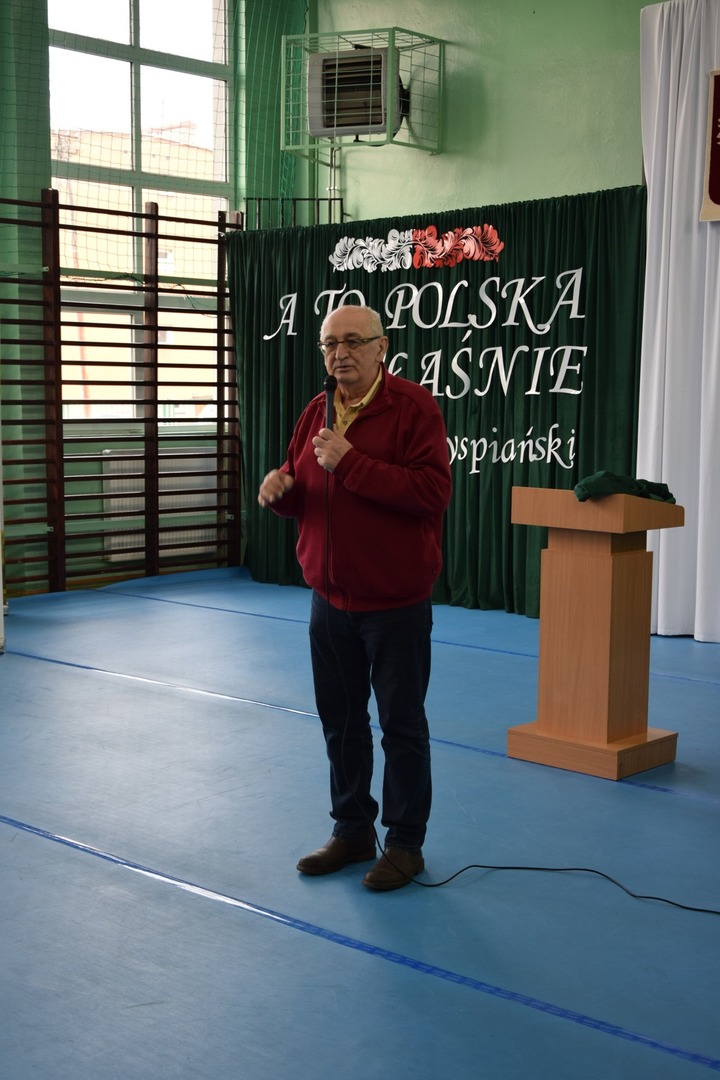 Następnie przeprowadził dla uczniów ciekawą pogadankę w formieprezentacji