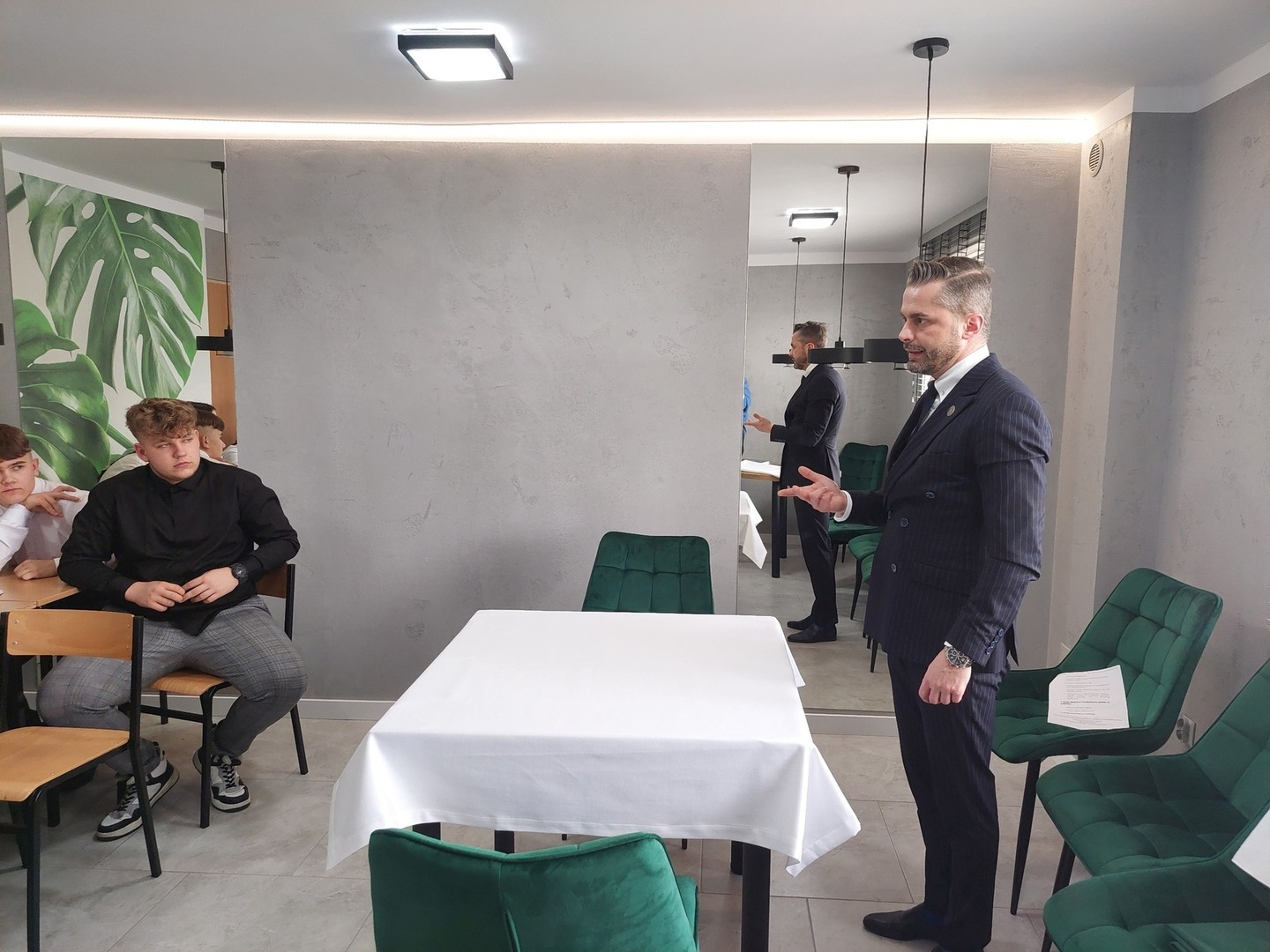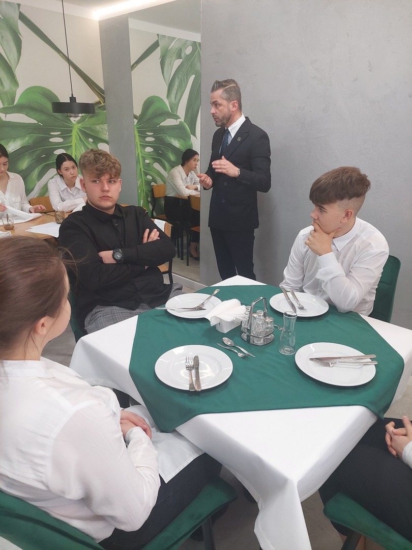 Szkolenie prowadził Michał Chabior - prezes Stowarzyszenia Kelnerów Polskich, szkoleniowiec, menager, profesjonalny kelner, który promuje nowoczesny, odświeżony wizerunek kelnera w gastronomii.