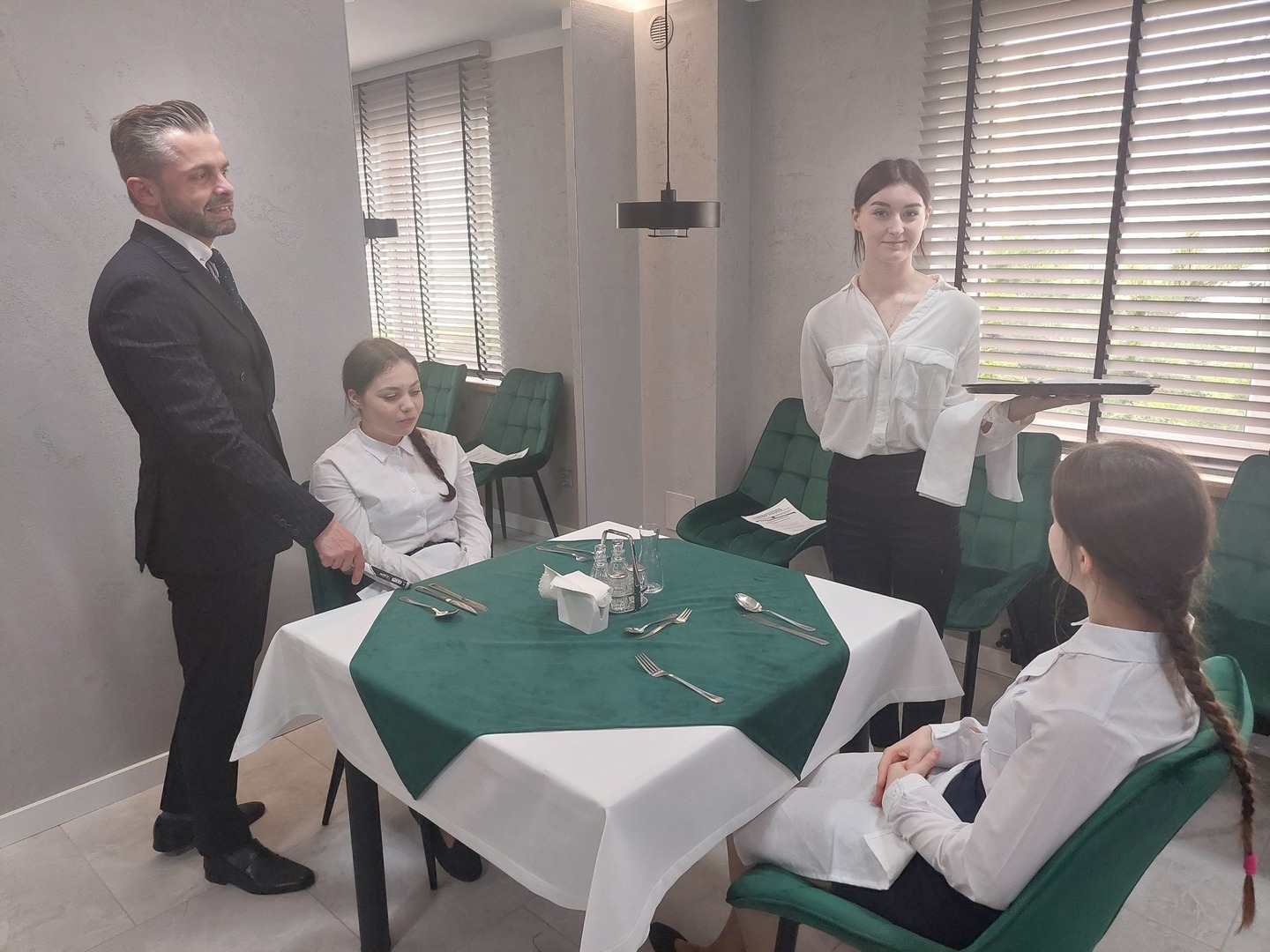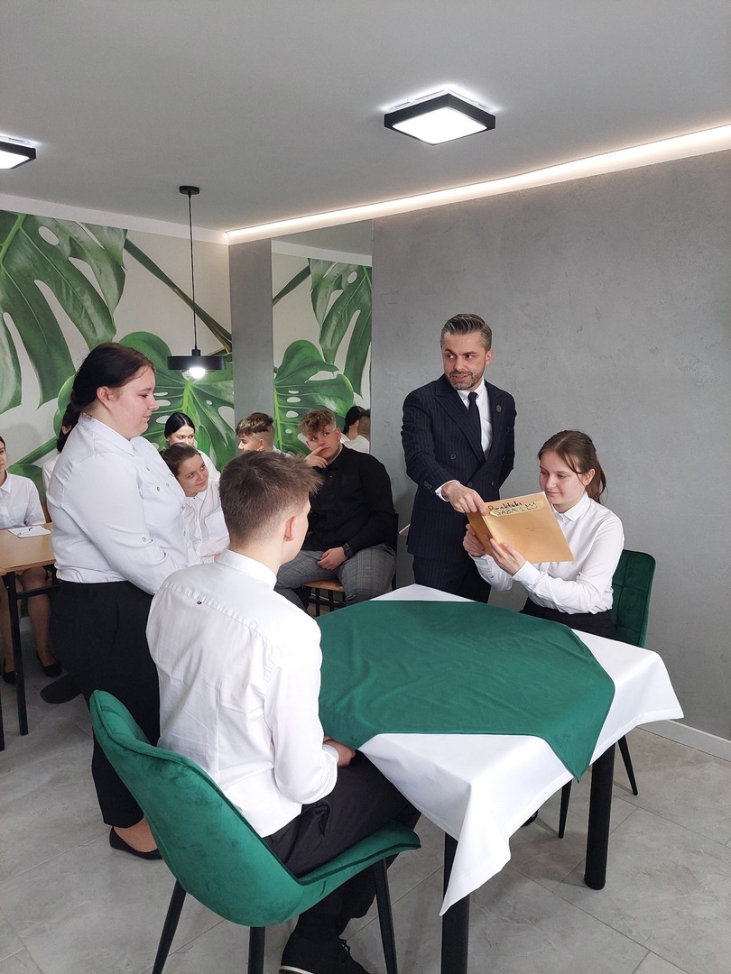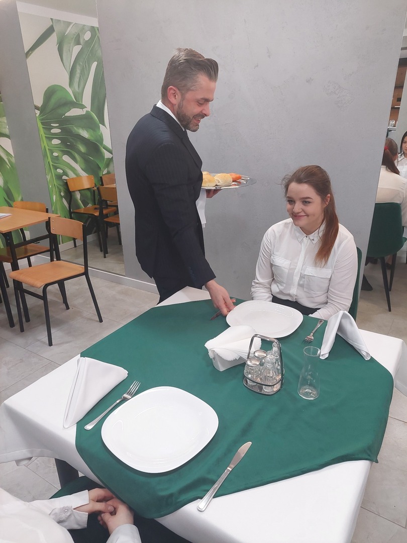 Dzięki Pani Dyrektor, uczniowie naszej szkoły mieli możliwość uczestniczenia w dwudniowym profesjonalnym kursie kelnerskim I stopnia,który odbył się w nowej pracowni obsługi konsumenta.