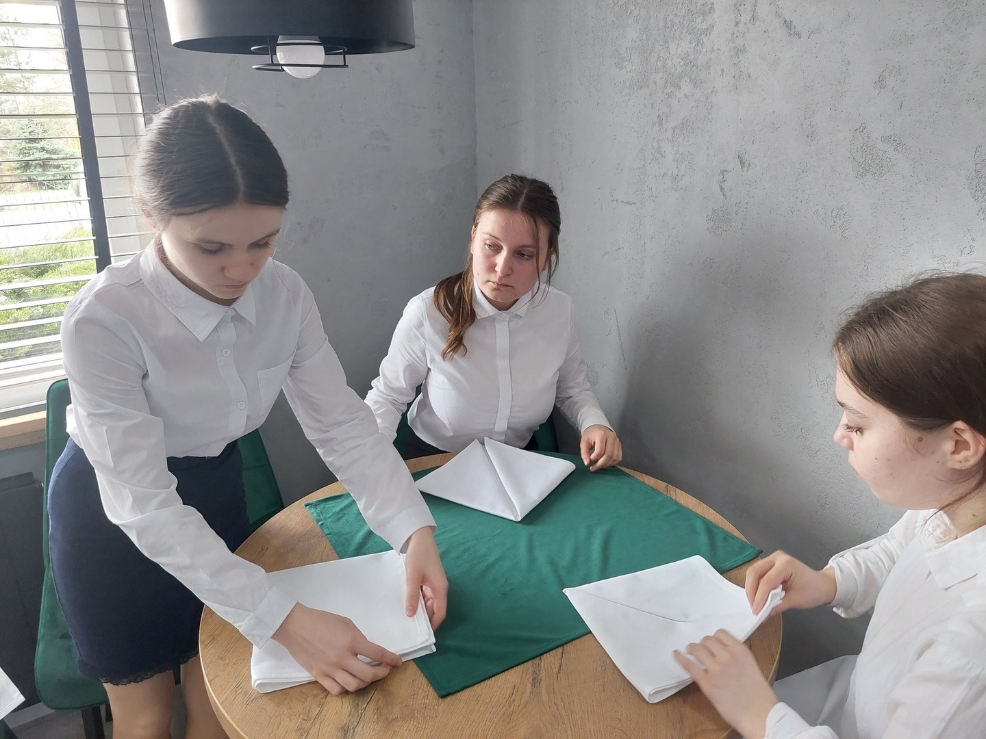 - Przygotowanie sali do obsługi gości- nakrycie stołu obrusem / rodzaje, dobór i zmiana, serwetki / rodzaje i sposoby ich formowania, zastawa stołowa / nakrywanie stołu;
