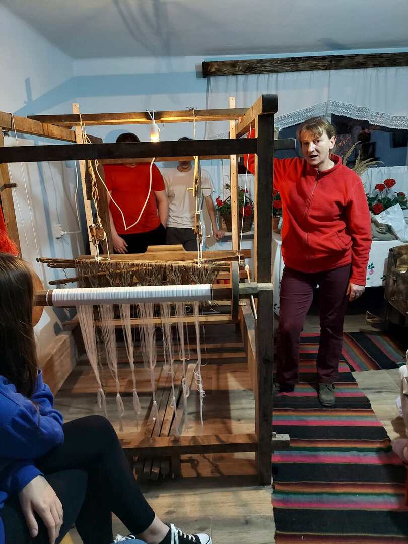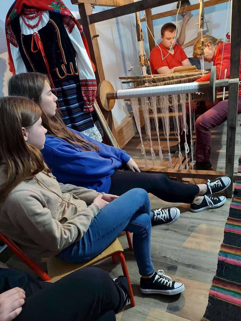 Uczestnicy zajęć poznali budowę warsztatu tkackiego, dowiedzieli się, czym jest