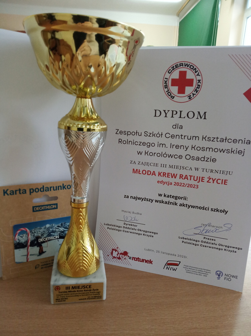 za najwyższy wskaźnik aktywności szkoły i zdobyła III miejsce.