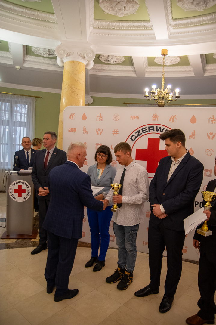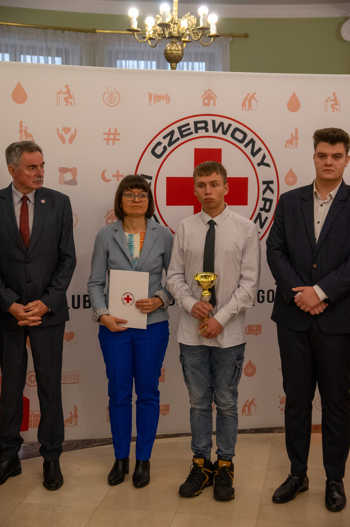 W imieniu Honorowych Dawców Krwi puchar, dyplom i nagrodę odebrał