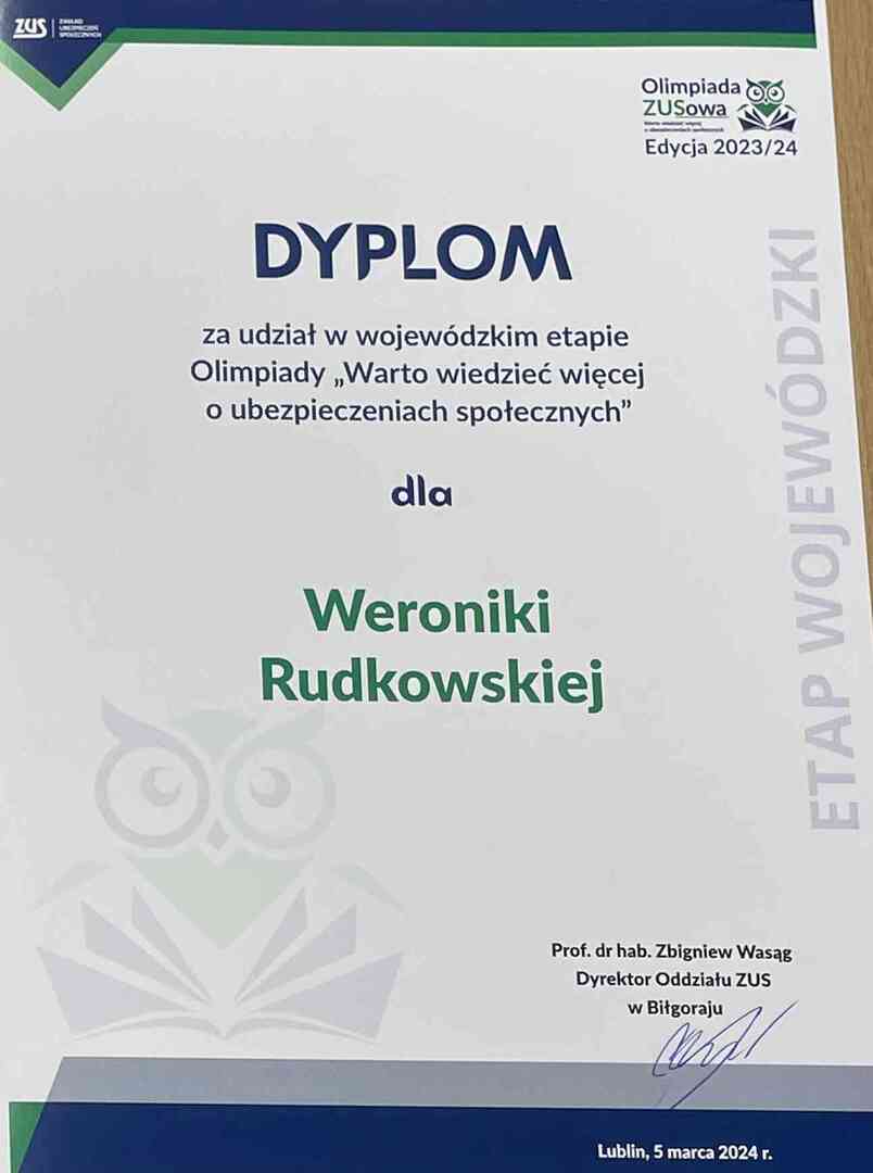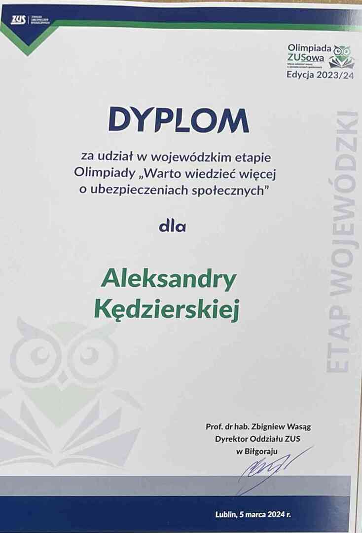 Do drugiego etapu trójstopniowej Olimpiady na terenie województwa lubelskiego zakwalifikowało się 20 trzyosobowych zespołów reprezentujących szkoły ponadpodstawowe w tym nasza drużyna, w skład której wchodziły: