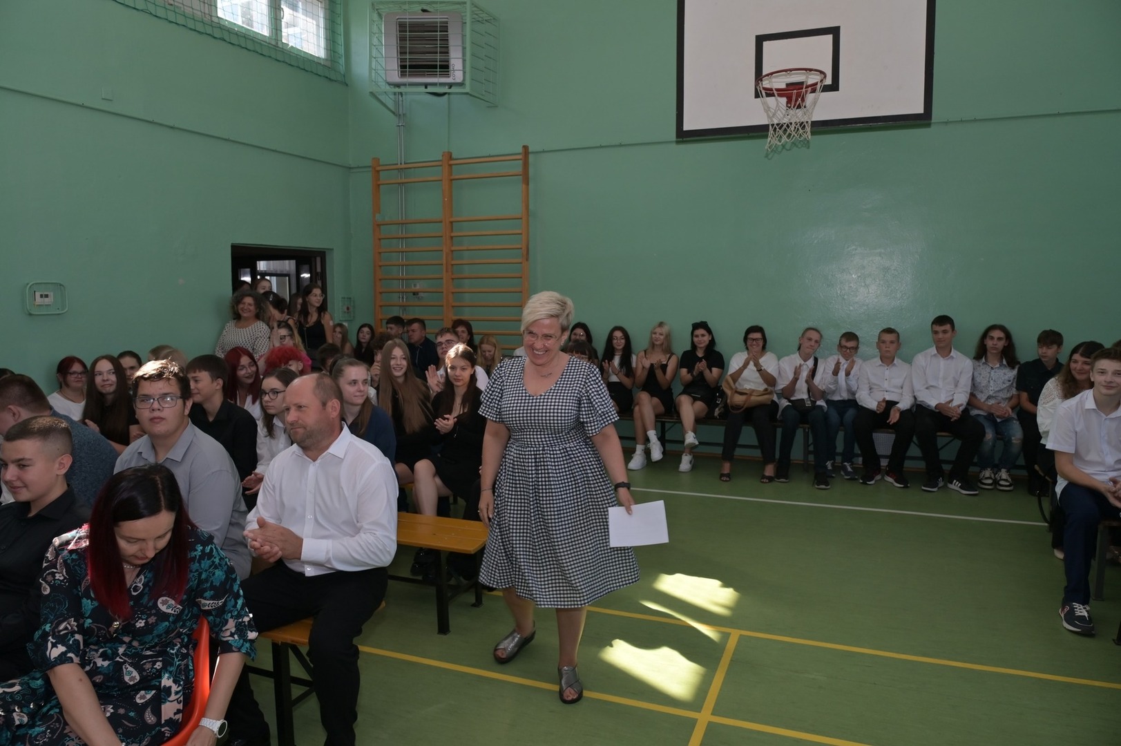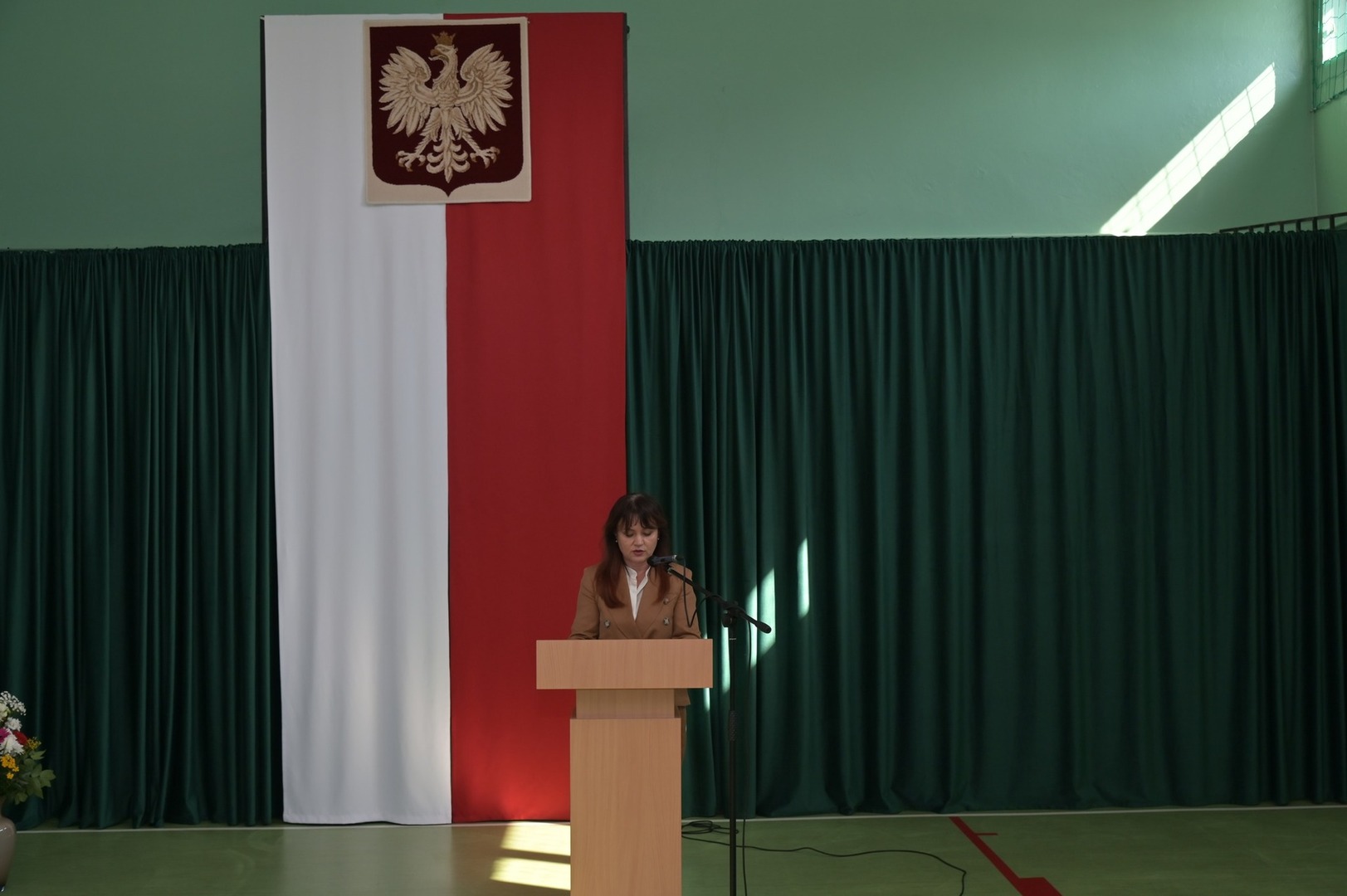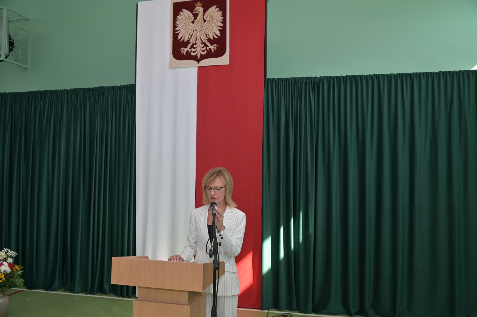Wicedyrektor szkoły pani Justyna Wołos przedstawiła okolicznościowe pismo Wojewody Lubelskiego Krzysztofa Komorskiego oraz Lubelskiego Kuratora Oświaty Tomasza Szabłowskiego,