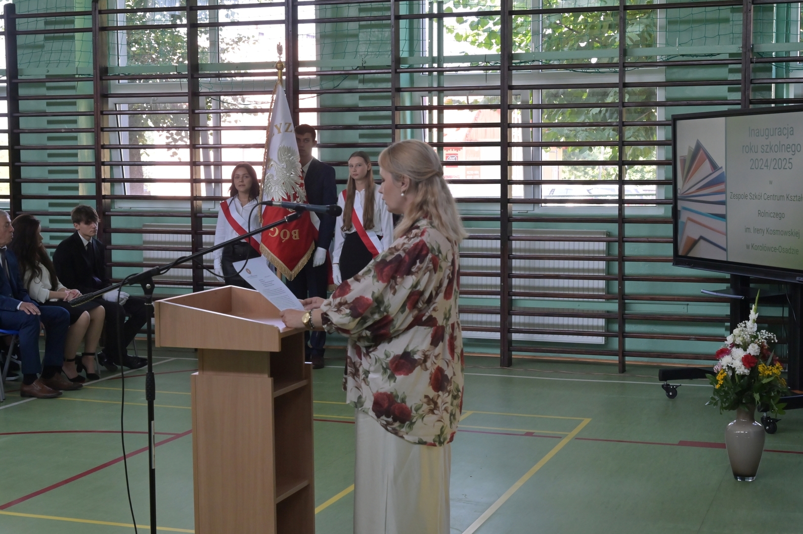 Odśpiewanie hymnu narodowego zainaugurowało uroczystość rozpoczęcia nowego roku szkolnego 2024/2025 w Zespole Szkół Centrum Kształcenia Rolniczego w Korolówce- Osadzie.