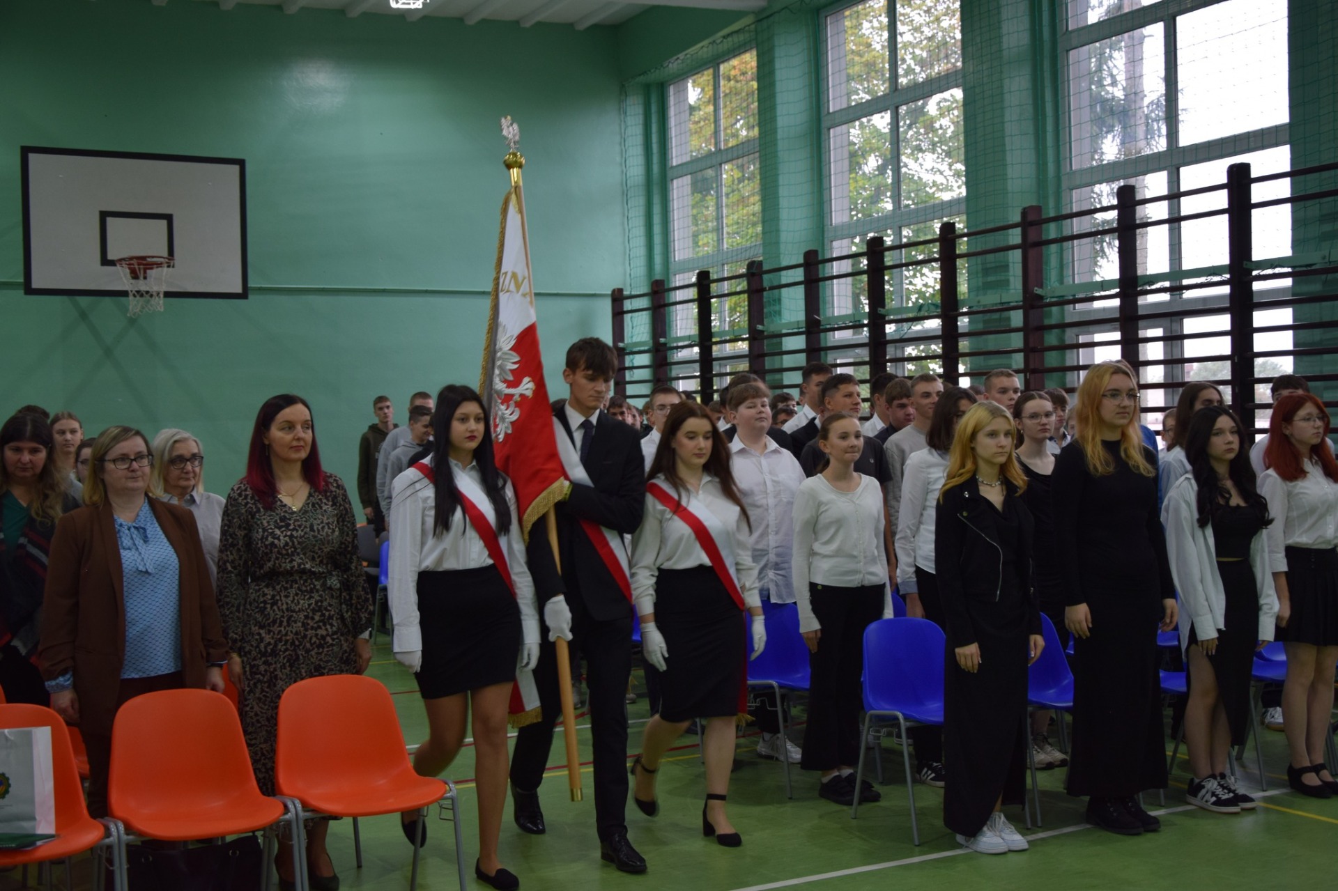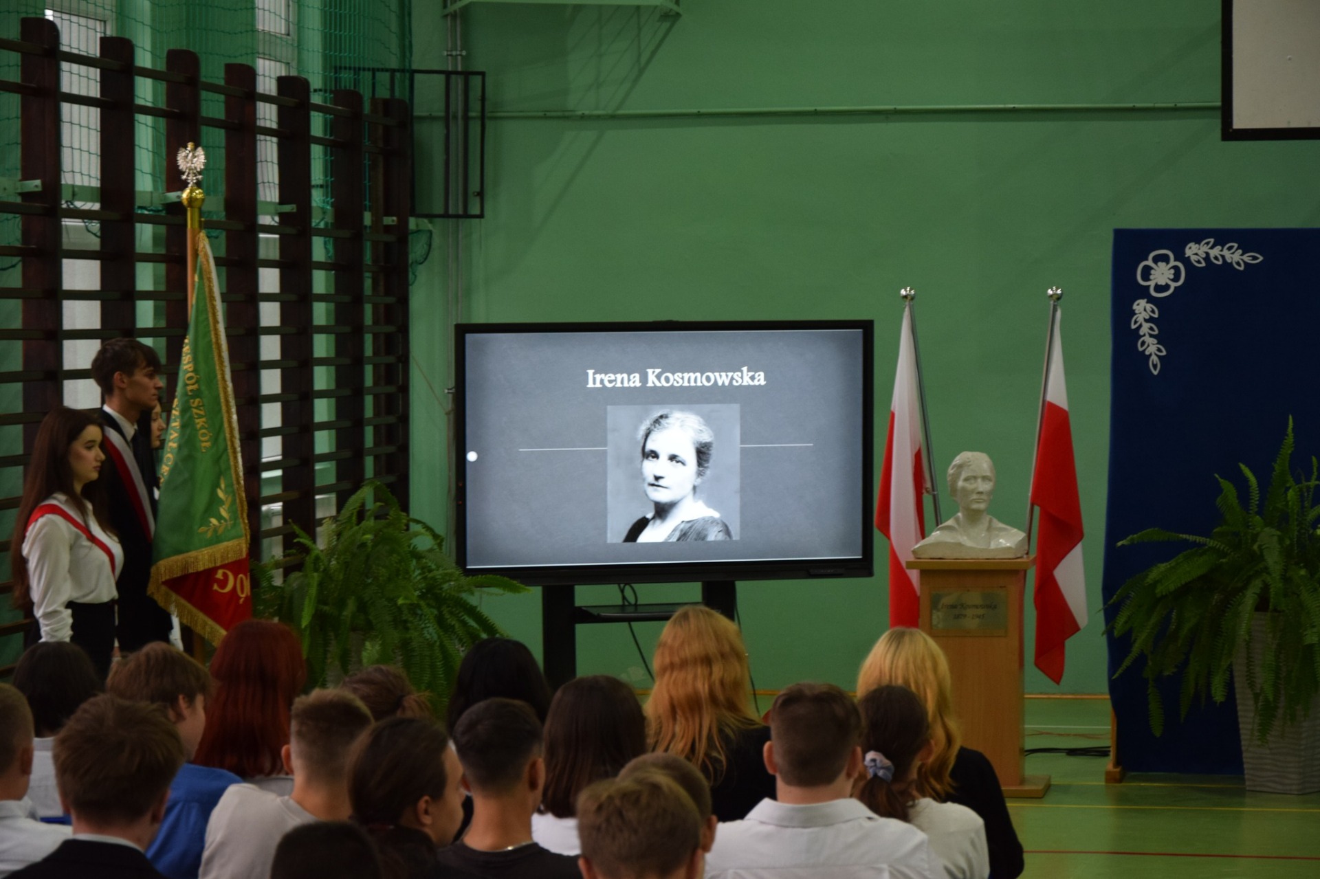 W naszej szkole dzień 15 października 2024 r. był szczególny. Nasi uczniowie najpierw zapoznali się z prezentacją o Irenie Kosmowskiej, patronce naszej szkoły, następnie zaś pierwszoklasiści złożyli uroczyste ślubowanie i stali się pełnoprawnymi wychowankami ZSCKR w Korolówce-Osadzie. Spotkanie było też okazją do uczczenia Dnia Edukacji Narodowej. Z tej okazji Pani dyrektor Renata Holaczuk złożyła życzenia nauczycielom i wszystkim pracownikom szkoły, zaś Pani wicedyrektor Justyna Wołos odczytała okolicznościowy list z Ministerstwa Rolnictwa i Rozwoju Wsi. W imieniu uczniów do życzeń dołączył Samorząd Uczniowski, który zaprezentował krótki program muzyczno-słowny.