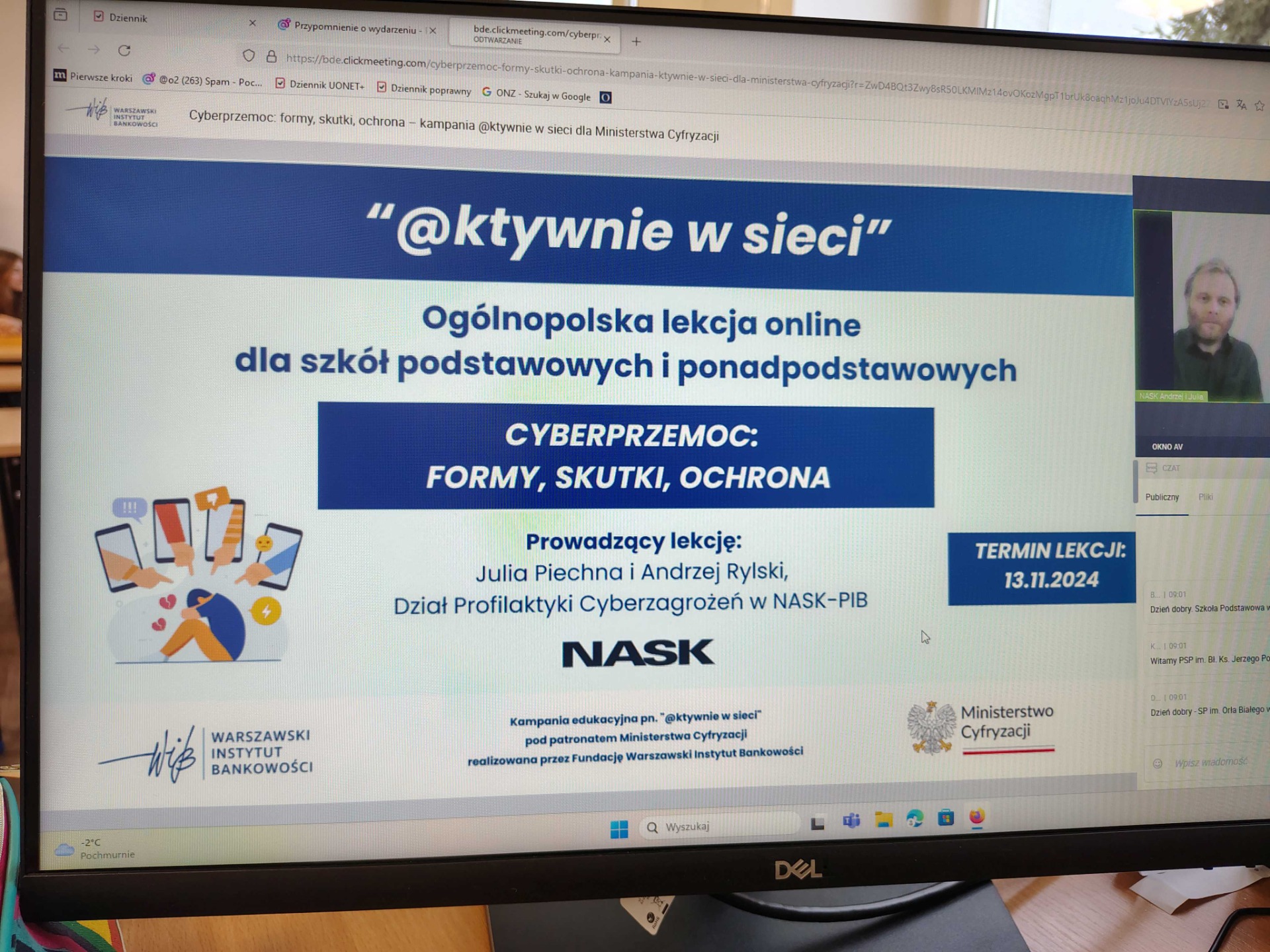 Lekcję poprowadzili Andrzej Rylski i Julia Piechna – eksperci z Działu Profilaktyki Cyberzagrożeń NASK.