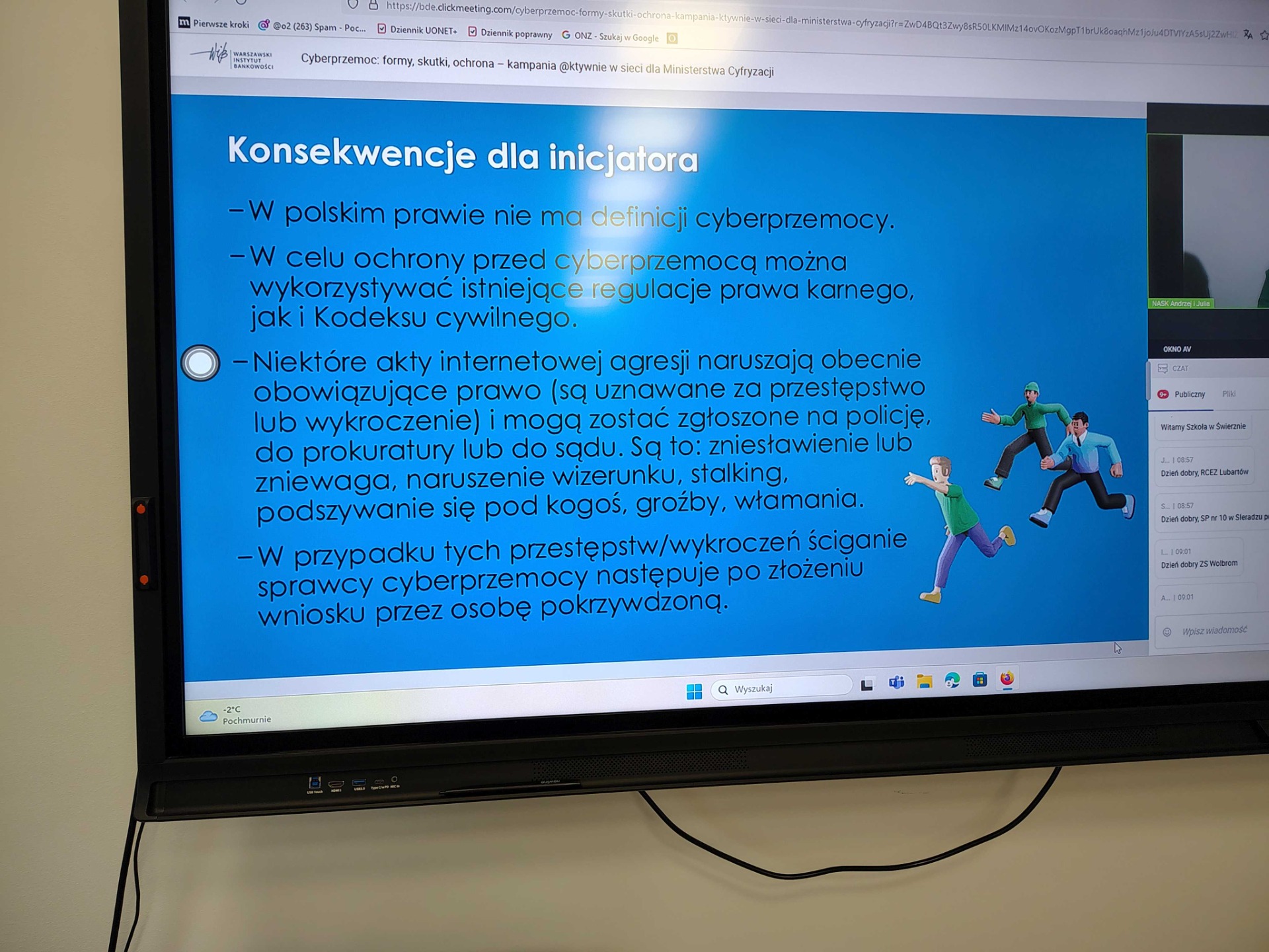 - konsekwencje prawne dla inicjatora cyberprzemocy,