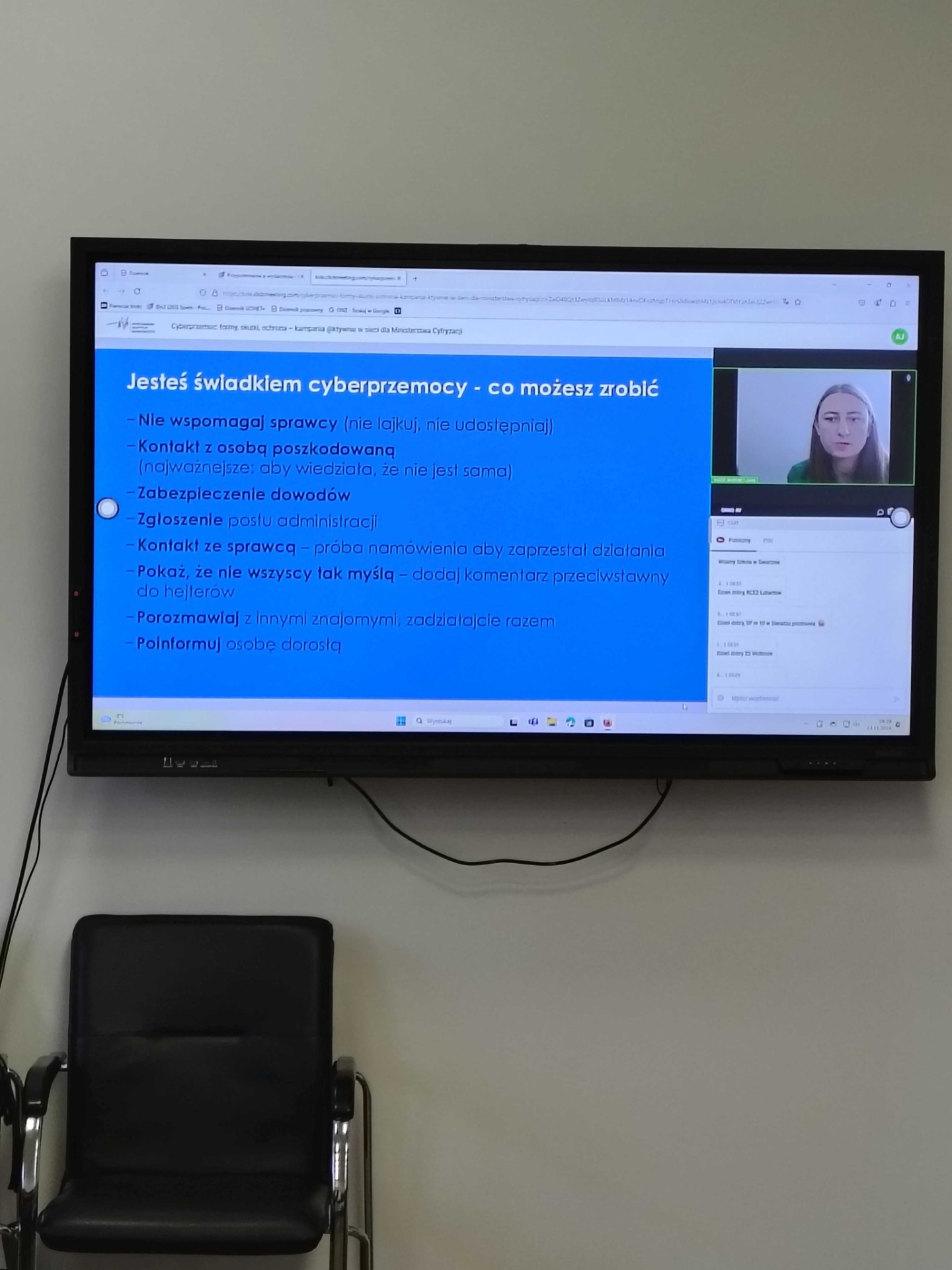 - porady dla osób będących celem lub świadkiem cyberprzemocy.