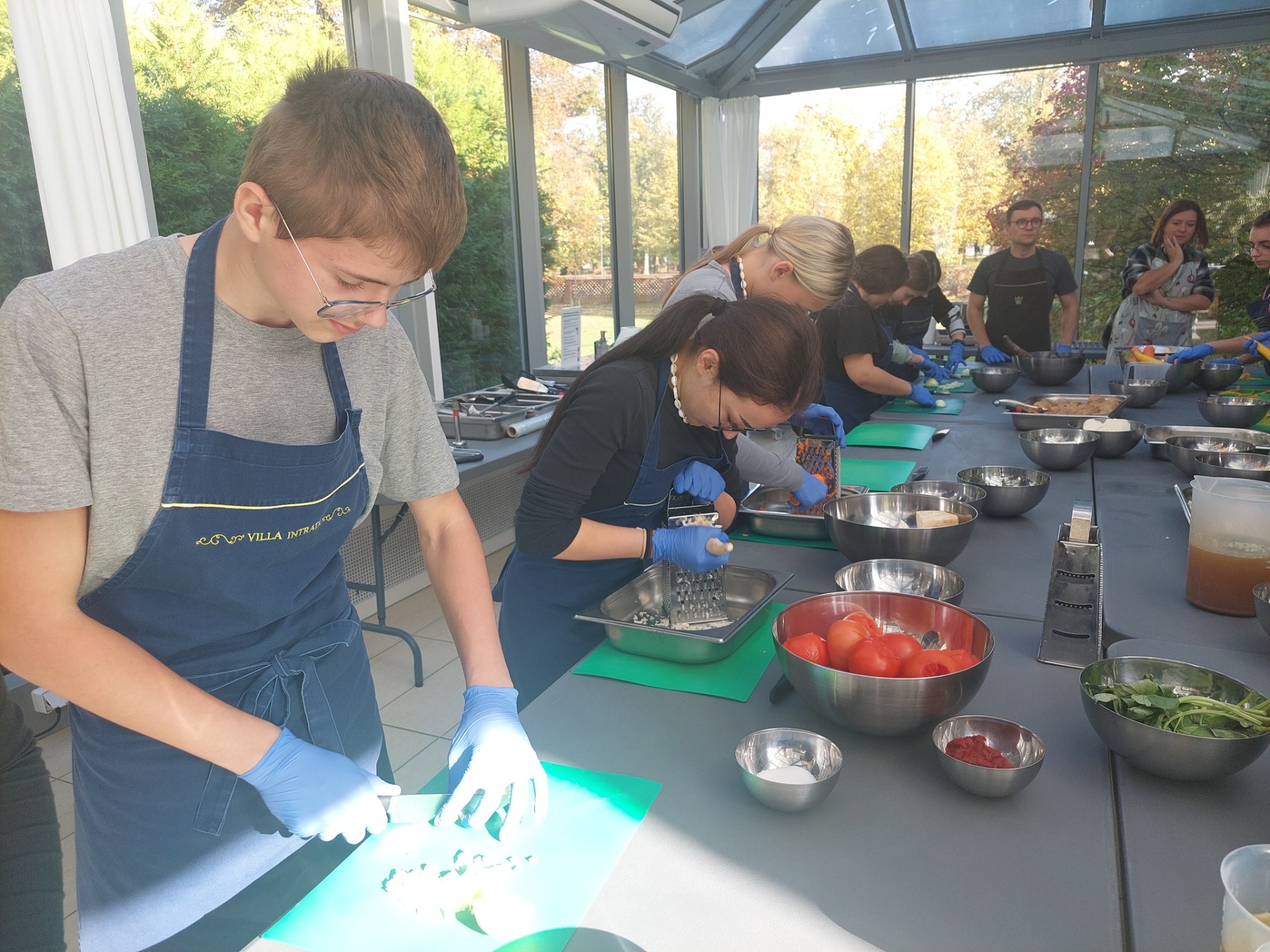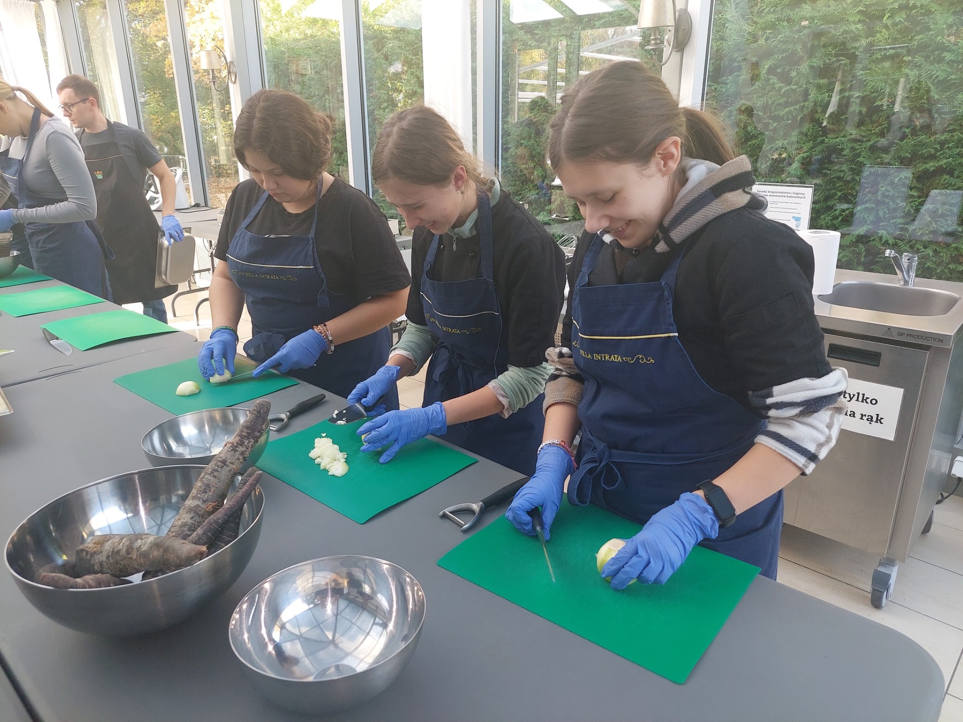 Po pięknej lekcji historii udali się do Villi INTRATA, aby uczestniczyć w warsztatach kulinarnych „Smaki Warszawy”, jako możliwość poznania kuchni lat 20. i 30. XX wieku - bogatej mieszanki różnych tradycji kucharskich, gustów, możliwości i mód. Pod czujnym okiem szefa kuchni i jego pomocników doskonalili swoje umiejętności praktyczne z przygotowania i wydawania dań oraz ich ekspedycji.