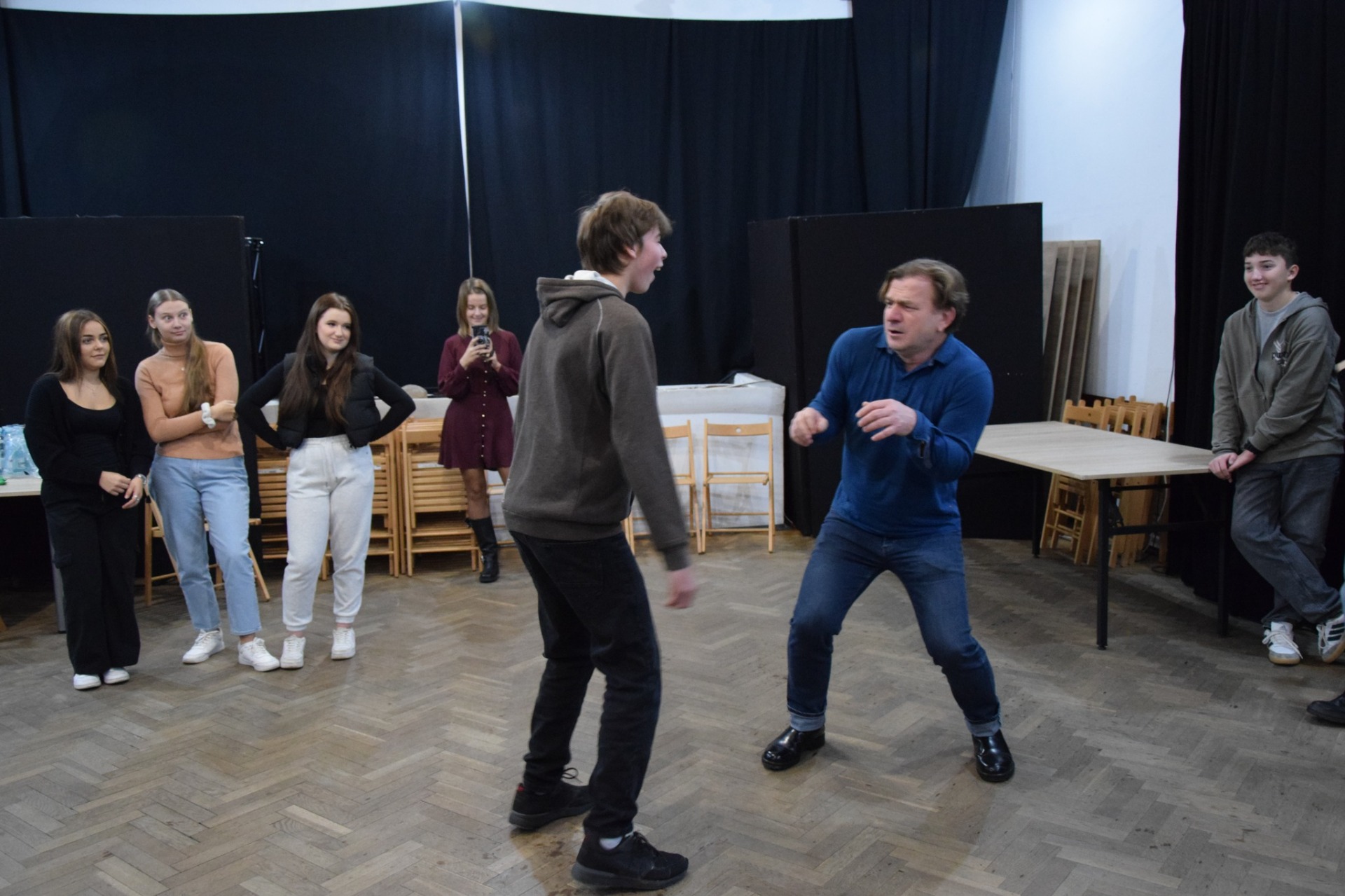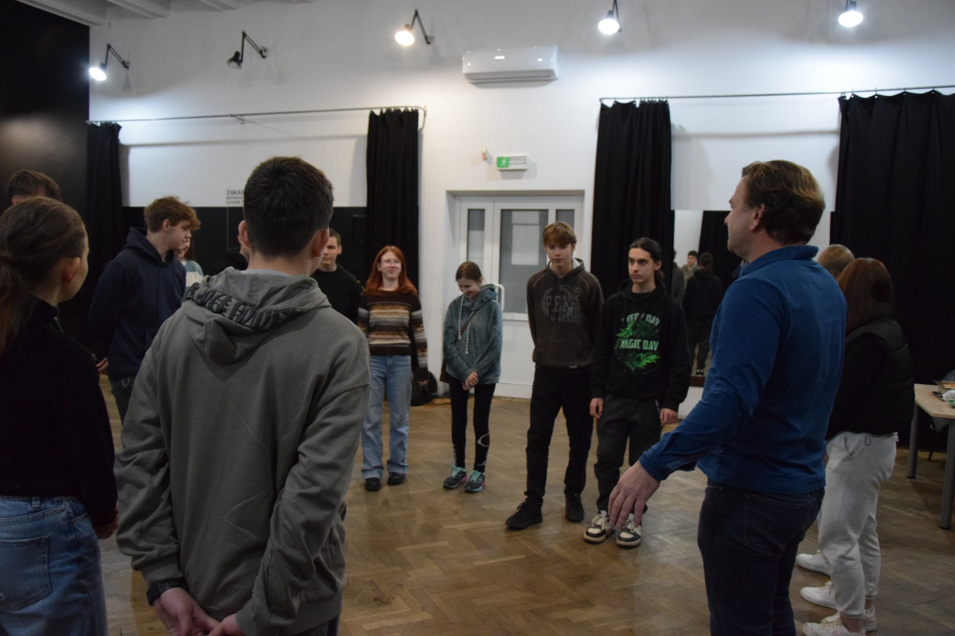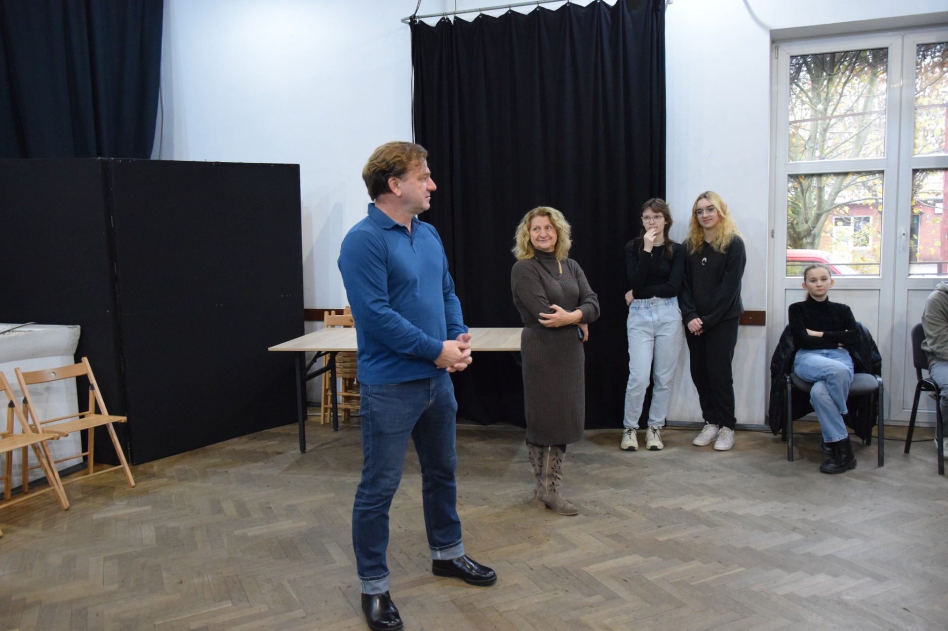 Na zaproszenie Muzeum - Zespołu Synagonalnego we Włodawie 14.11.2024 r. Szkolne Koło Teatralne Korale z ZSCKR w Korolówce-Osadzie uczestniczyło w projekcie InterAKCJA „Pierwszy krok w chmurach” - warsztatach teatralnych z Jackiem Królem - aktorem teatralnym i filmowym, znanym m.in. z filmów: