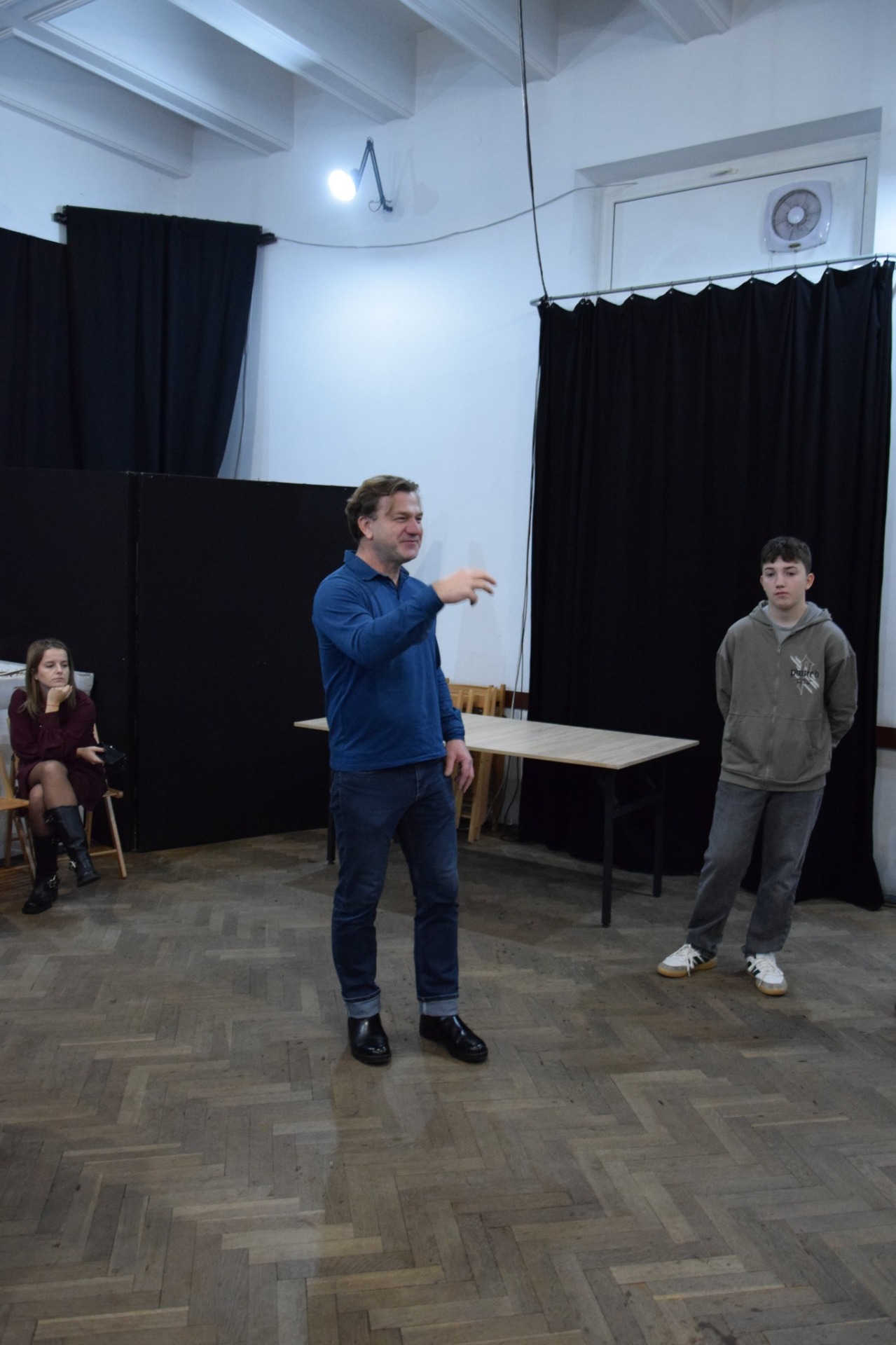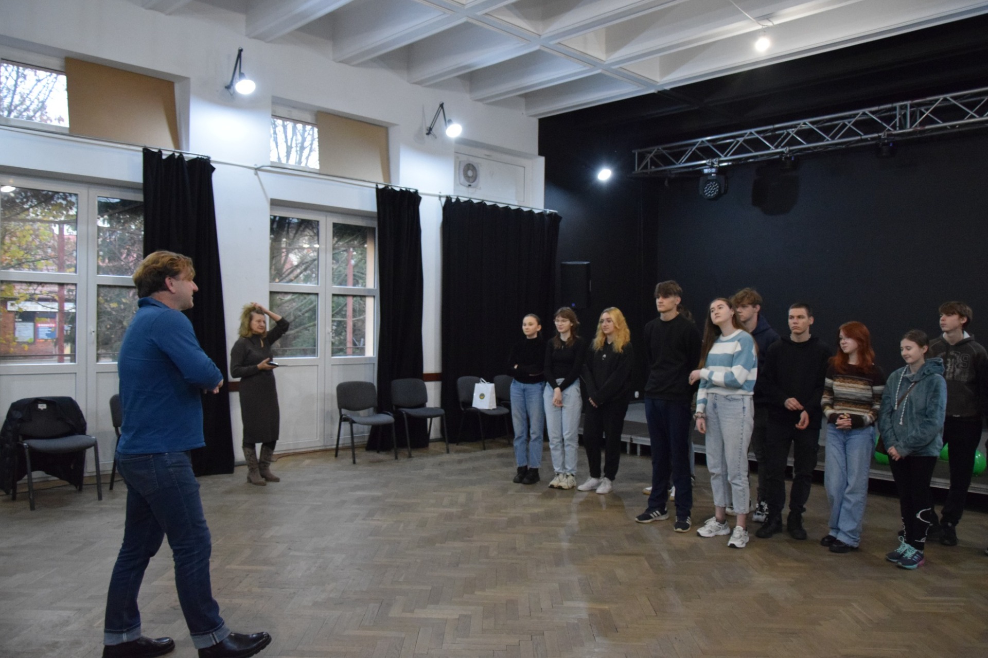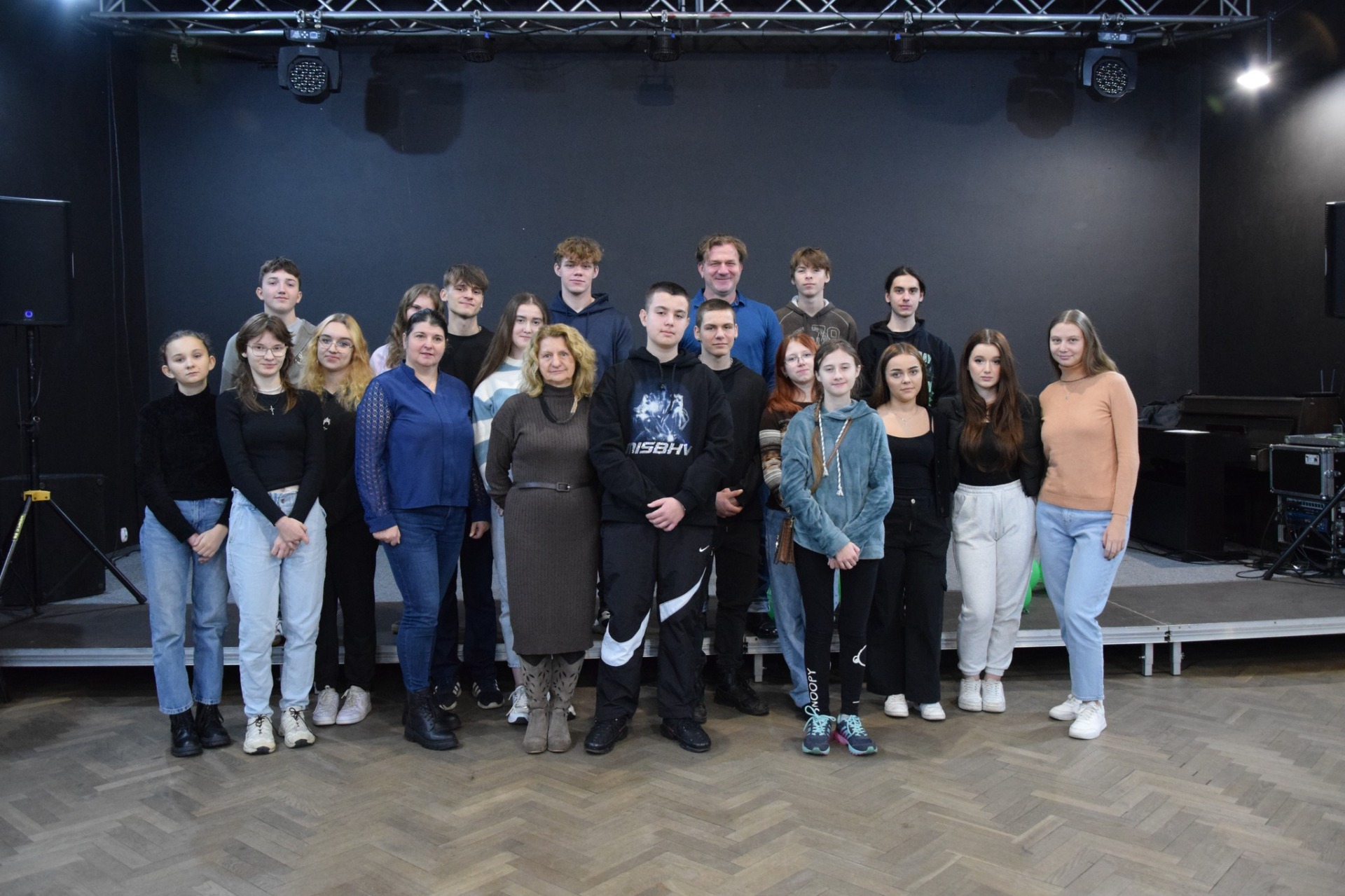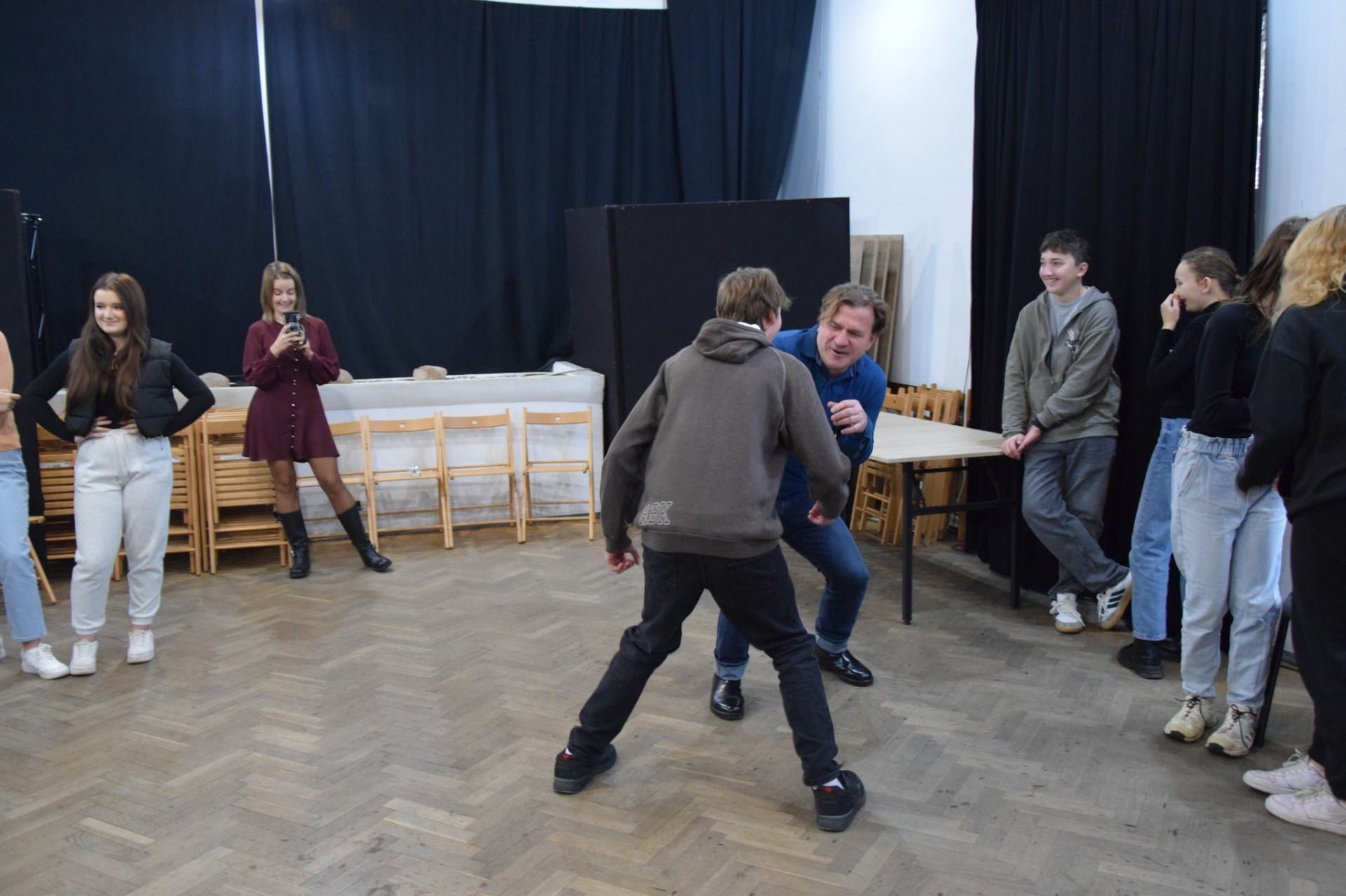 Na zaproszenie Muzeum - Zespołu Synagonalnego we Włodawie 14.11.2024 r. Szkolne Koło Teatralne Korale z ZSCKR w Korolówce-Osadzie uczestniczyło w projekcie InterAKCJA „Pierwszy krok w chmurach” - warsztatach teatralnych z Jackiem Królem - aktorem teatralnym i filmowym, znanym m.in. z filmów: