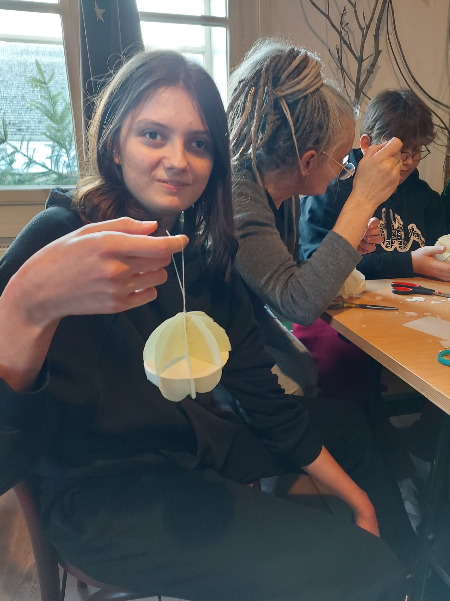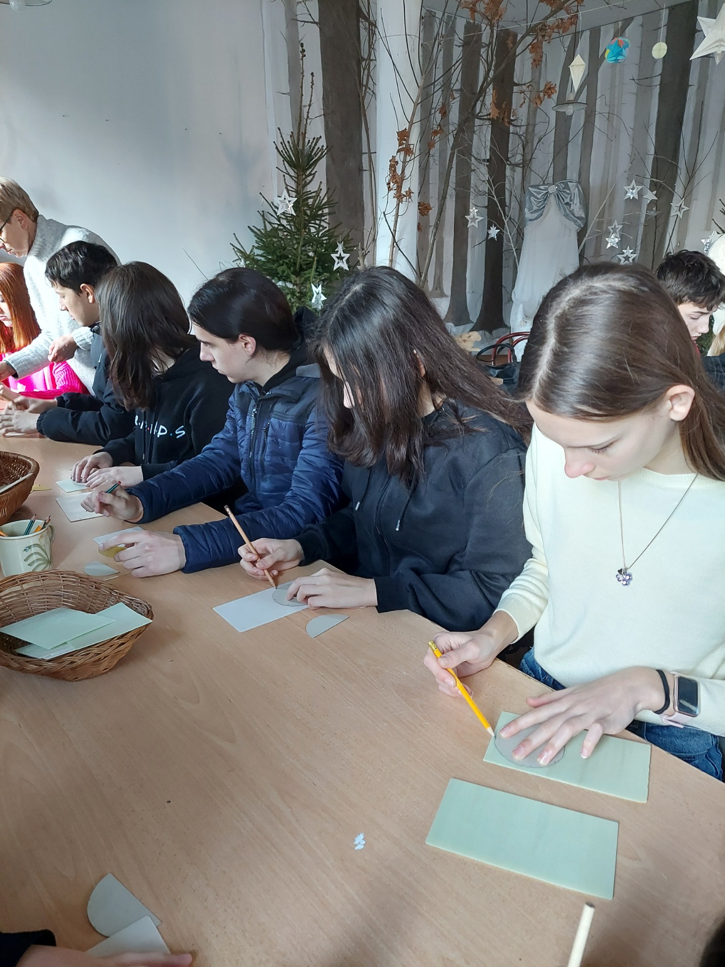 Uczniowie poznali historię i technikę wykonywania „światów”, czyli zapomnianych już ozdób bożonarodzeniowych z opłatka.